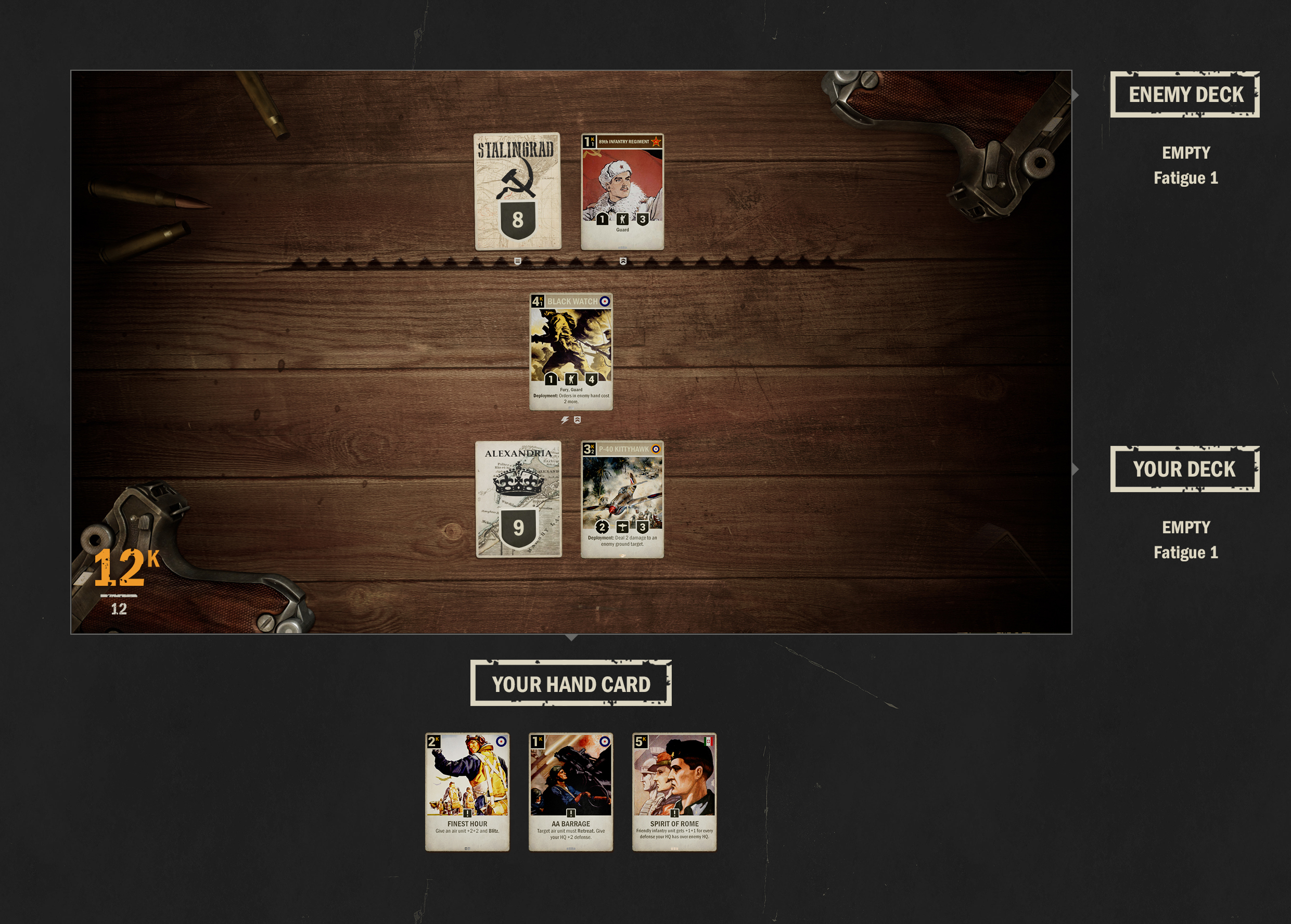 In this second KARDS puzzle we challenge you to solve a battlefield situation. You need to carefully inspect the battlefield, weigh your options and then come up with a sequence of winning moves. This challenge is of moderate difficulty.