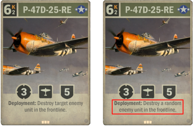 Old: Deployment: Destroy target enemy unit in the frontline. New: Deployment: Destroy a random enemy unit in the frontline.
