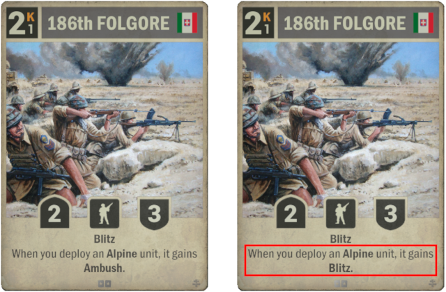 Old: When you deploy an Alpine unit, it gains Ambush. New: When you deploy an Alpine unit, it gains Blitz.