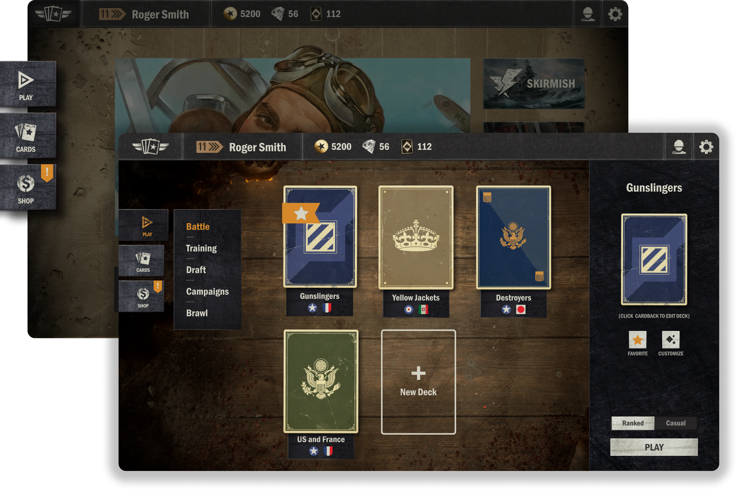 Skirmish is a special game mode in KARDS where you play with alternate rules. These rules vary; you’ll face something different at every Skirmish event. Read more about Skirmishes in our announcement blog New game mode: Skirmish.