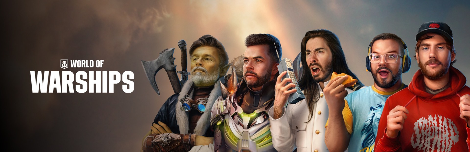 Revered online personalities are taking command in your favorite online game! Add Sapnap, CouRage, Ludwig, Nadeshot, and MoistCr1TiKaL to your fleet and enjoy their fully voiced commentary on your battle performance, and deck your ships out with permanent camouflages that come straight from the minds of these famed content creators.