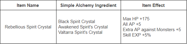 The Rebellious Spirit Crystal is an upgraded version of the spirit crystal that could be obtained through the Main Questline. Many adventurers have obtained these spirit crystals over the course of two seasons, yet due to feedback on the crystal's being somewhat lackluster, we implemented additional effects of Extra AP against Monsters and Skill EXP increase to aid those seeking to further increase their character's power and/or those leveling alternative characters.