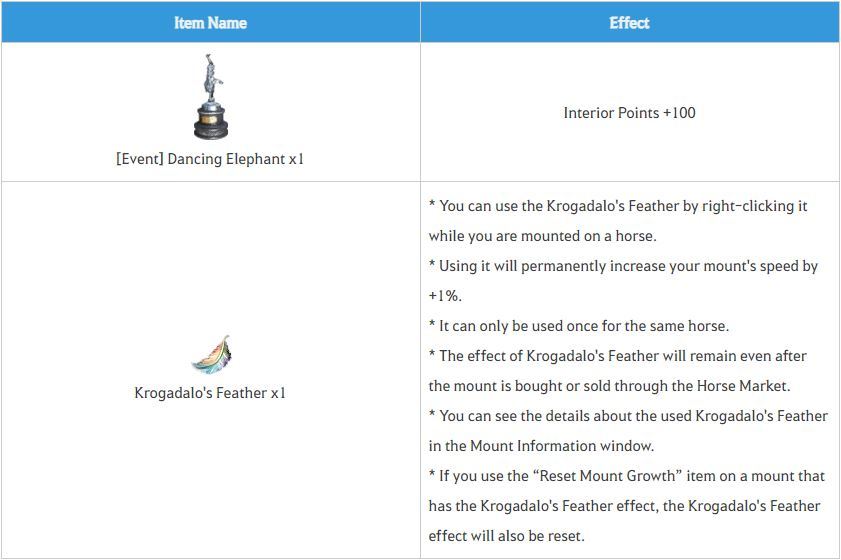 * Additional Notices - Pearl Abyss reserves the right to change or cancel the event depending on mitigating circumstances. If changes are made, they can be found on this event page. - Event items may have restrictions (sale/trade) and/or different binding settings/expiration dates. Due to this reason, these items cannot be transferred or restored. - For details such as whether the item is bound, please refer to the in-game item description. - Items and/or rewards that were used normally cannot be recovered. - Participating in the event using inappropriate methods may result in a cancellation/retrieval of your reward(s) and/or restriction from the game. - For any questions or concerns regarding the event, please contact us via [Support]. - Any content not mentioned on this page is subject to the [Black Desert Event Rules].