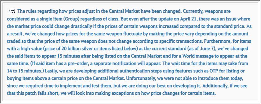● There will now be a 15-minute delay before an item that is above a certain price is purchasable when listed for sale on the Central Market.