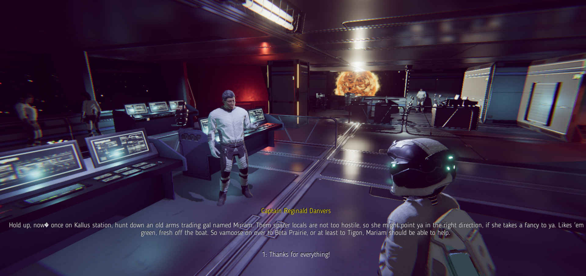 Misc • Increased NPC jaw movement. • Enemy Spaceship AI disabled until we fix AI network issues. • PrisonBlue outfit added for players spawning into the Cumberland via the Settler path. • Controls info updated in escape menu. • /UI chat command now functional for disabling the HUD and sending in those awesome screens!