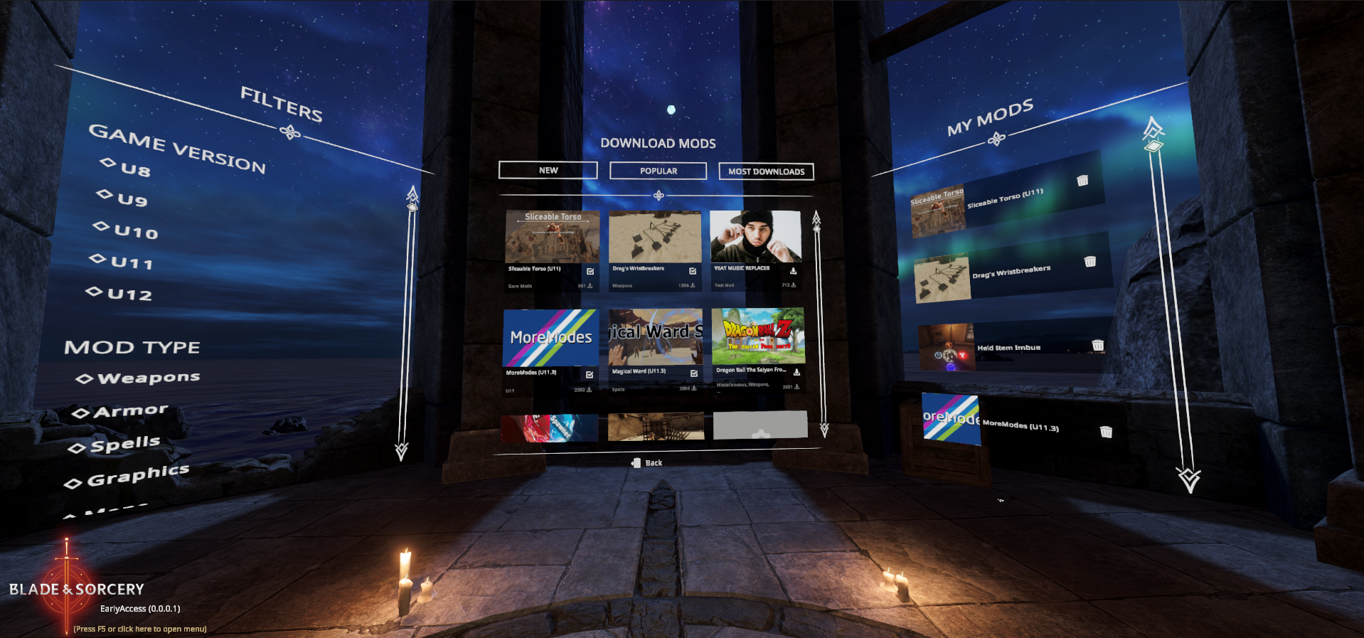 But rest assured, if you are not too interested in this in-headset mod manager you can still download and install mods manually the good old fashioned way with any mods downloaded from the websites nexusmods.com or https://mod.io/g/blade-and-sorcery.