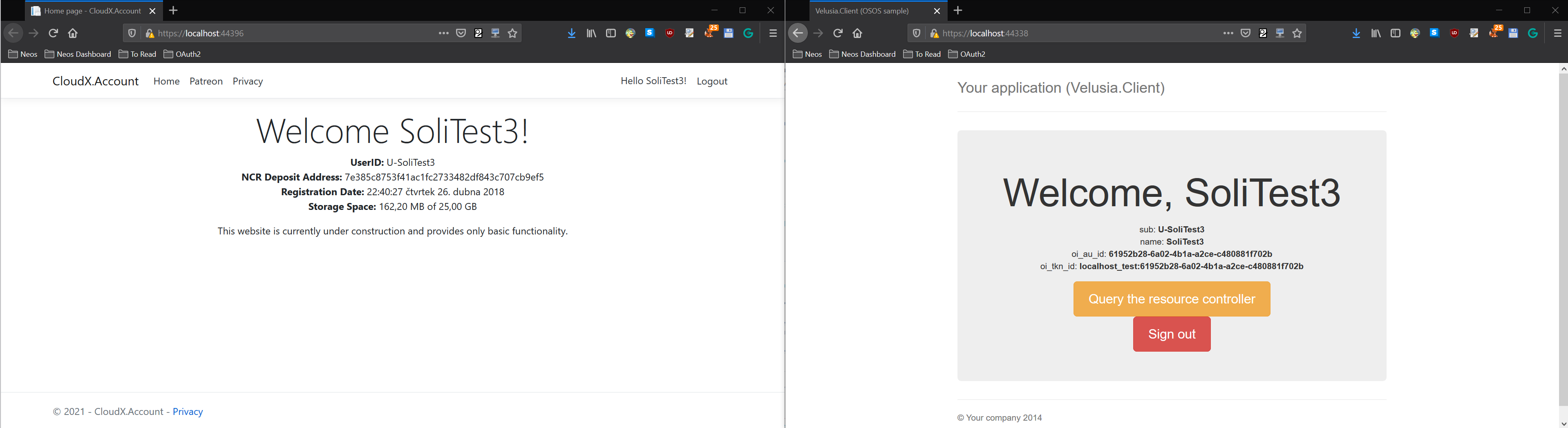 On the left is the Neos website, on the right a sample application that got linked to the Neos account.