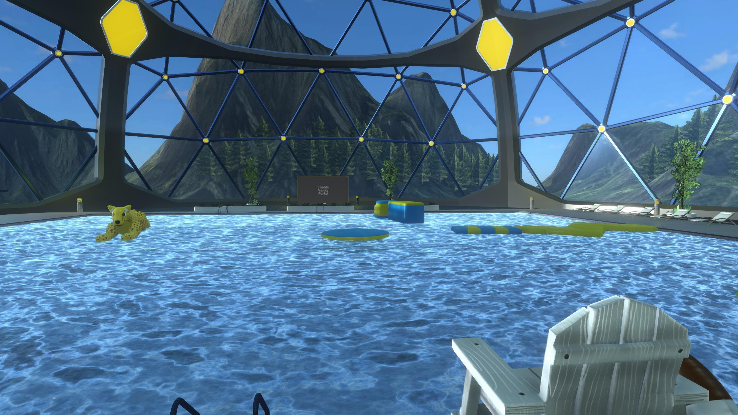 Filled with water and splendor, a nice pool map made by the CytraX Group! Ever just feel a bit stressed out from the activities in Neos? Just wanna kick back and swim with some friends. This map fits that feeling perfectly! The Dome also has spacial audio and audio reactive lights to set the mood as you swim. Thanks CytraX Group!