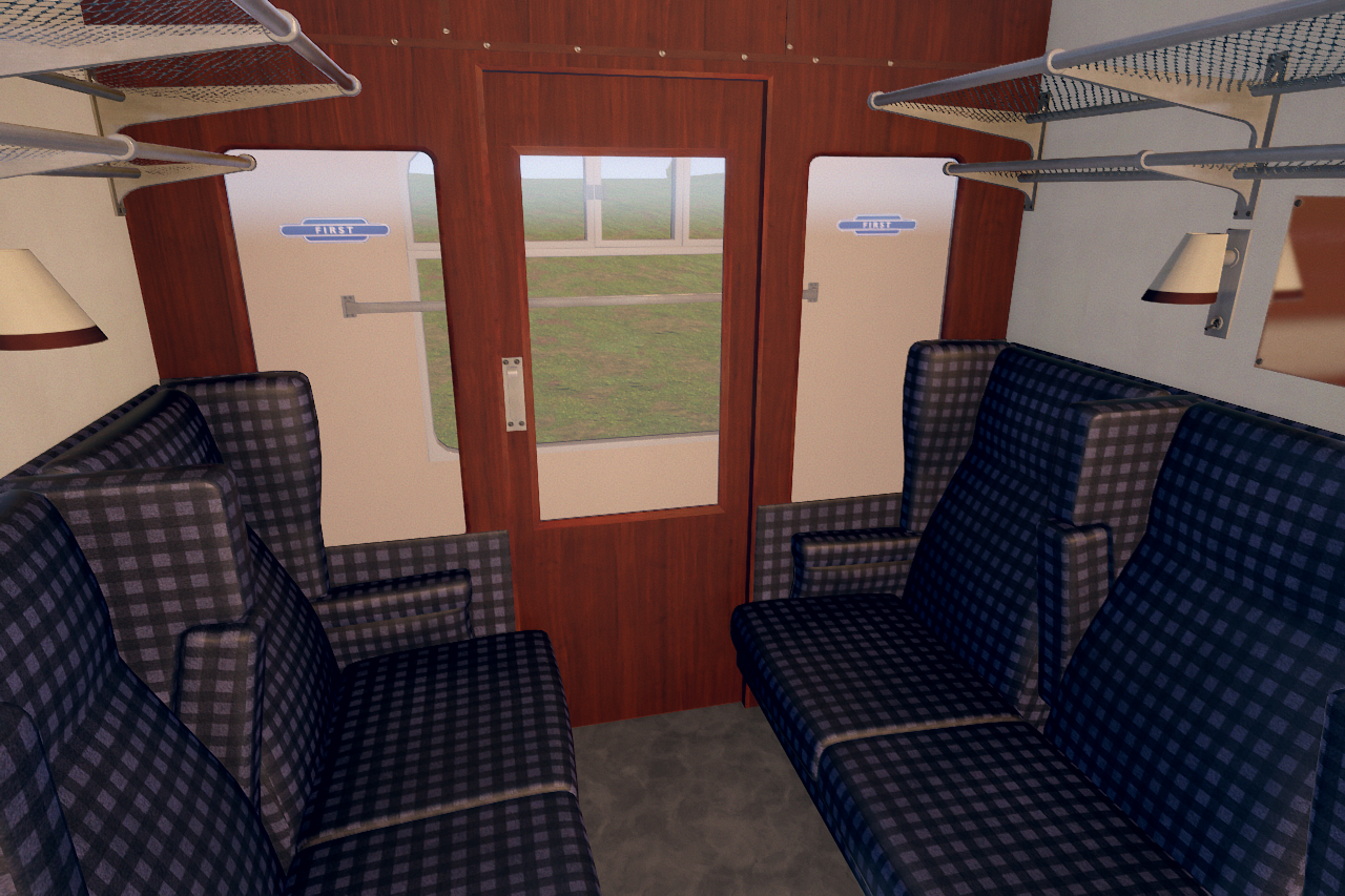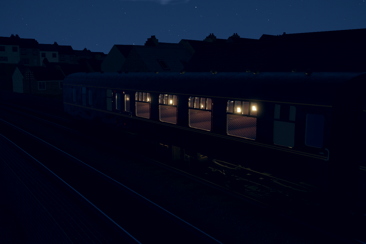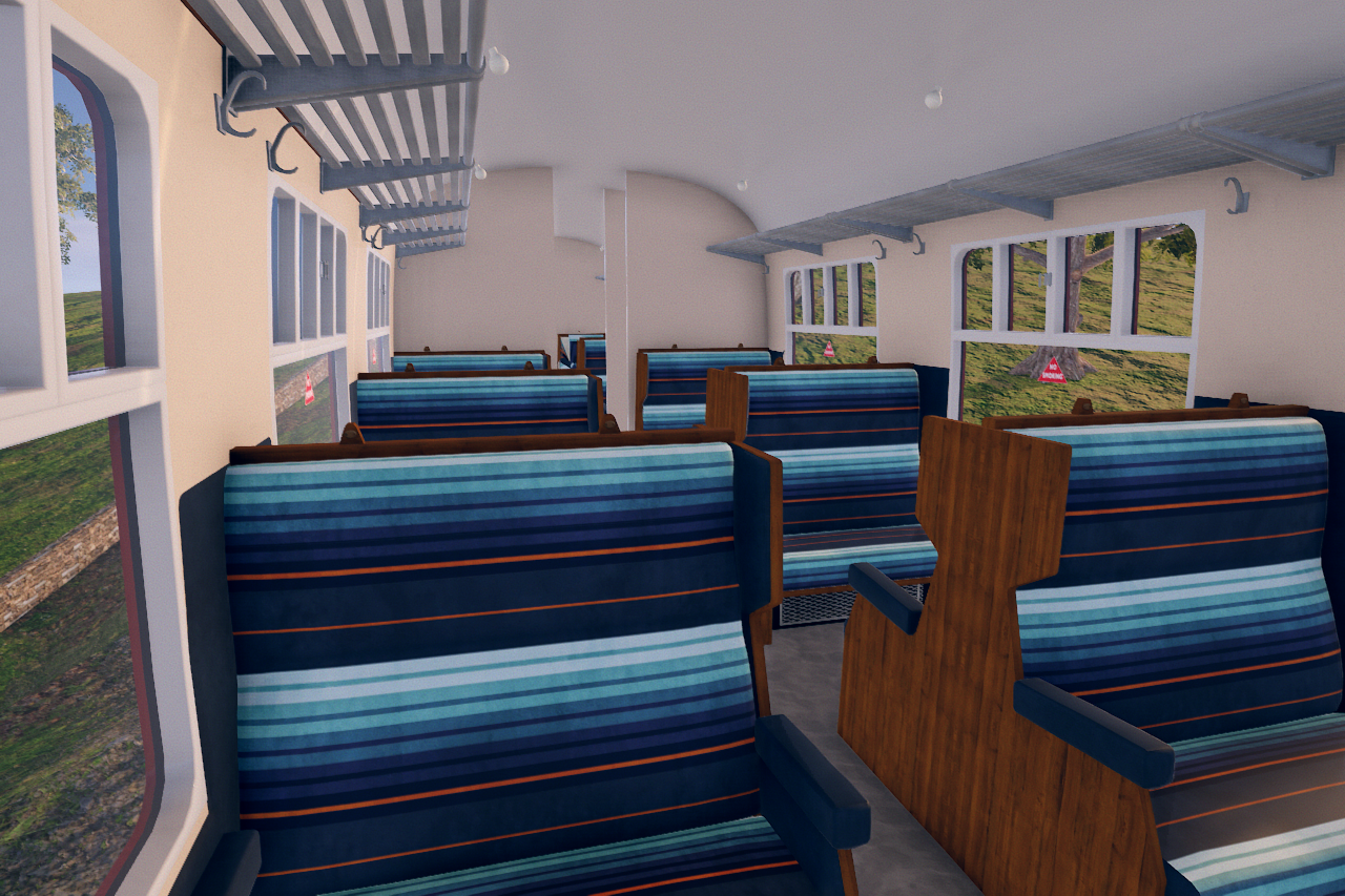 A coach with four 2nd class compartments, a luggage compartment with opening doors and guard's office. The last three pictures show an experimental night-time lighting which won't be included in the next update yet.