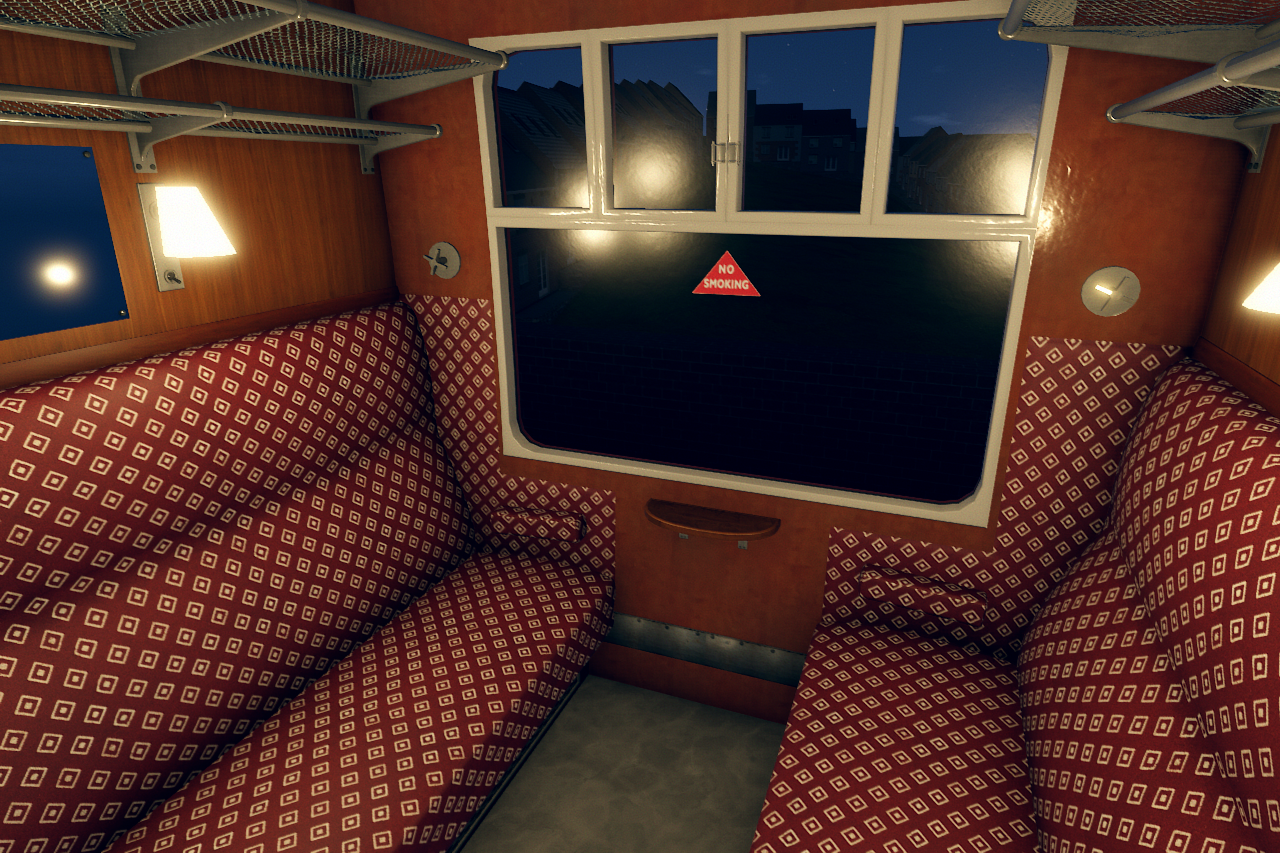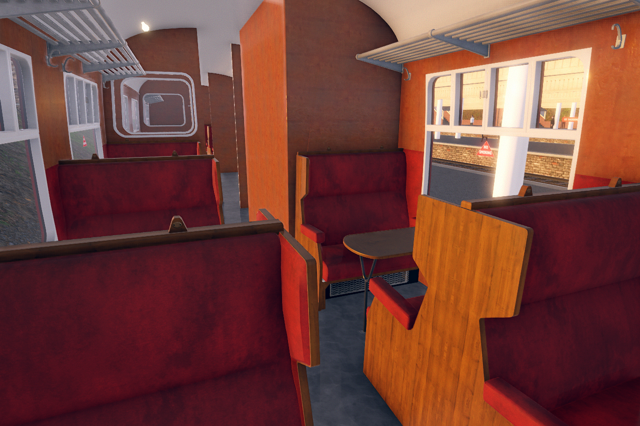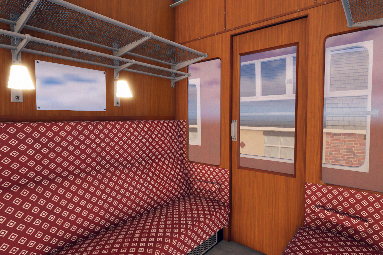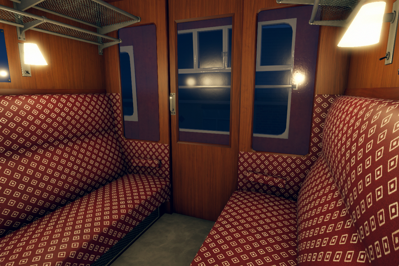 A coach with four 2nd class compartments, a luggage compartment with opening doors and guard's office. The last three pictures show an experimental night-time lighting which won't be included in the next update yet.