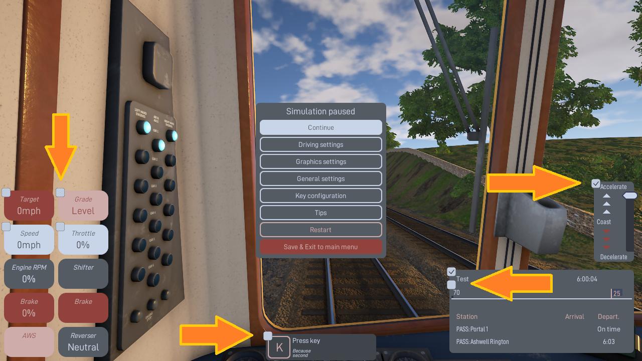 The old style of vacuum brake handling with separate keys (E, D, C) for releasing, lapping and applying brakes has also been restored. Free movement of the brake handle is still possible with keys T and G.