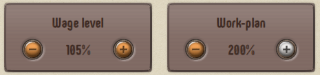 There is a new “Staff turnover” statistic. The lower the turnover the more workers keep their jobs, it makes the production process more stable and increases the production over time. You can change the turnover with the new options “Wage level” and “Work-plan”. Happy workers, happy customers.