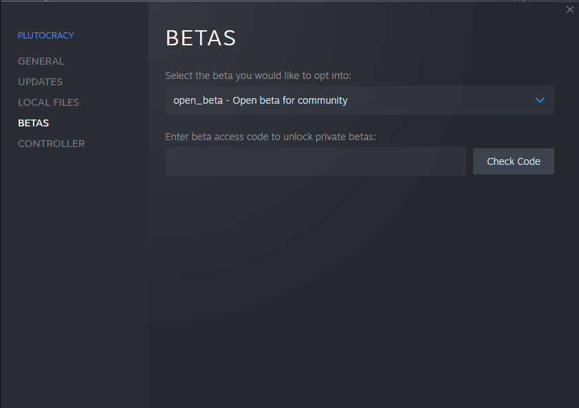 1) Find Plutocracy in the list of your games, right-click and select "Properties"