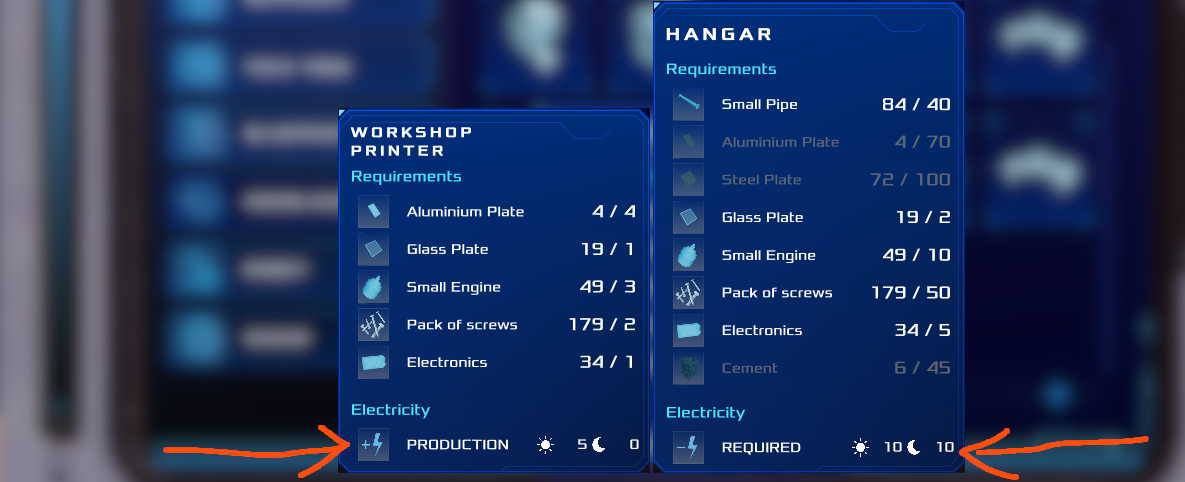Info about power production / consumption of each blueprint: