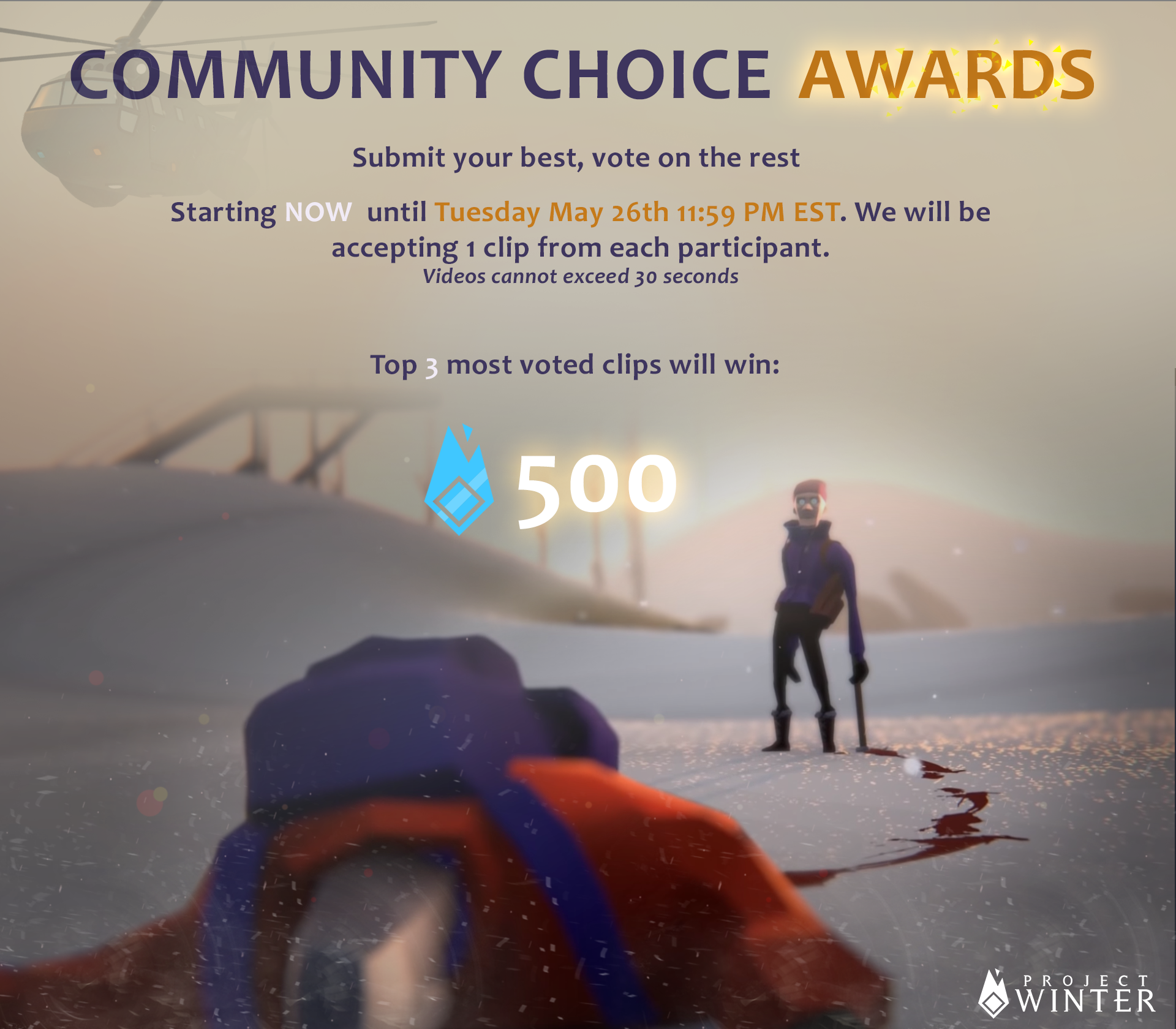 There are no criteria for submitted videos. They can be funny, action-packed, clever, or all-around supportive of the Project Winter spirit! Choose your clip wisely, as your peers will be choosing by their own accord!