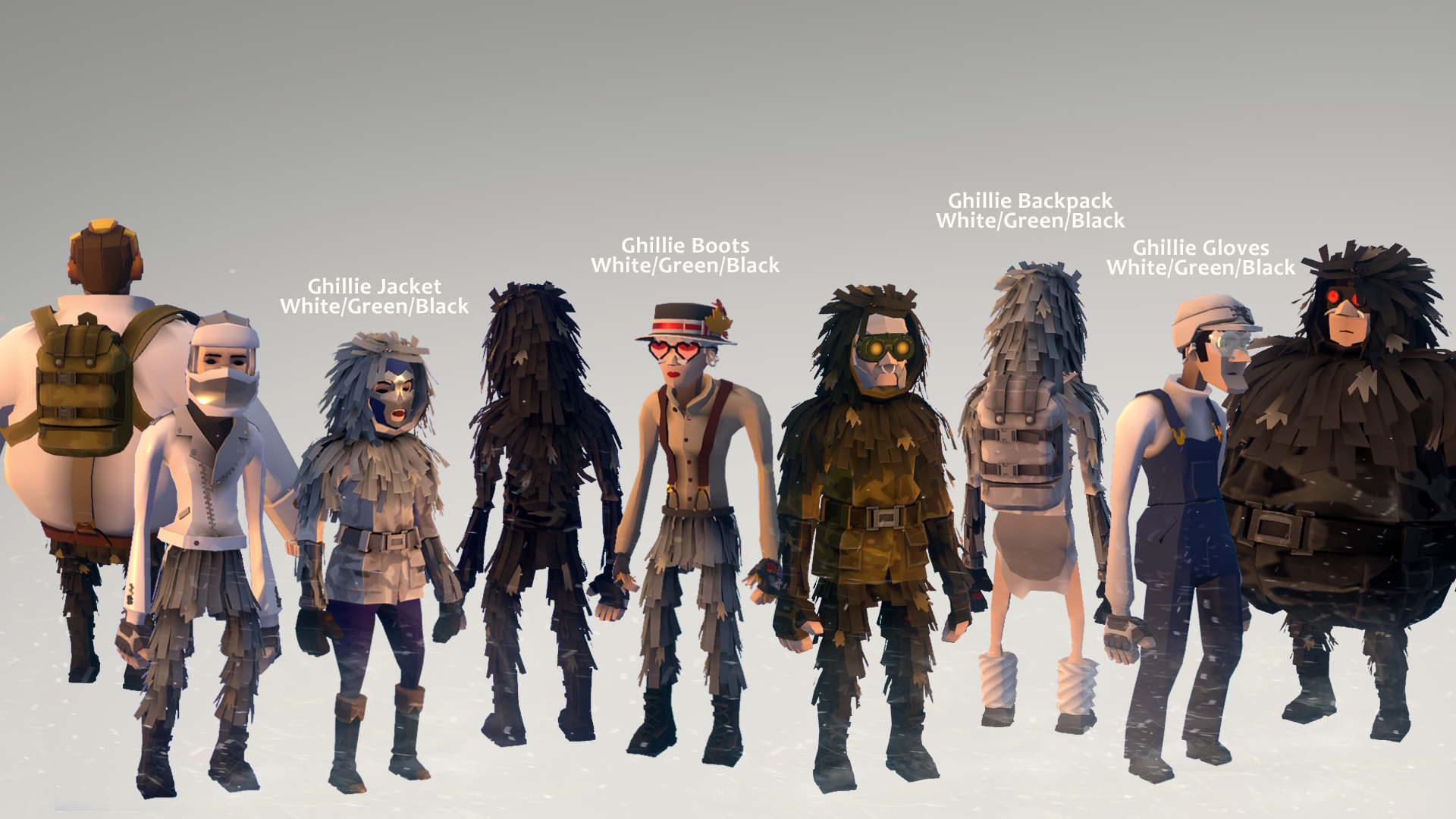 Character model will have a square hair when wearing a hat or a bald head without a hat when the user equips a Ghillie Jacket and a Wild Cape