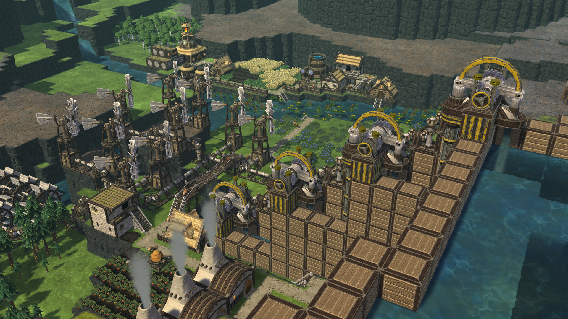 All the citizens of your new colony will need food and water to survive. Unfortunately, the Earth’s climate has changed a lot, and we only have two seasons now - dry and wet. Those names do not reveal the full scope of things, though. The dry season always brings a drought of catastrophic proportions and the wet season barely brings in enough water to sustain life. That is a problem since you need water to grow food and keep your beavers happy. However, if beavers are good at one thing, that is for sure building dams. In Timberborn, you will be able to construct highly complex systems of dams, canals, and reservoirs. Redirect the flow of entire rivers. Control the ebb and flow of water to irrigate your fields and keep your colony alive.