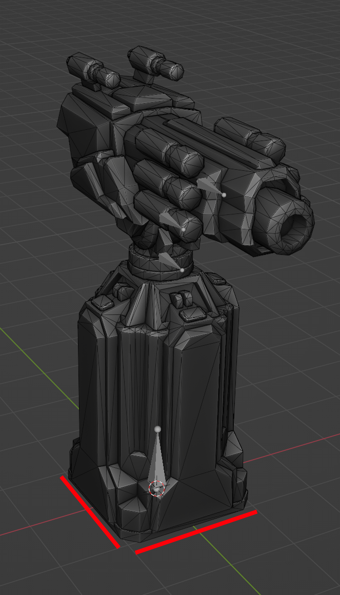 The bases of these towers are 1x1 grids, which equals to 2x2 meters. A 2x2 model in Blender is a perfect match for our 1x1 grid.