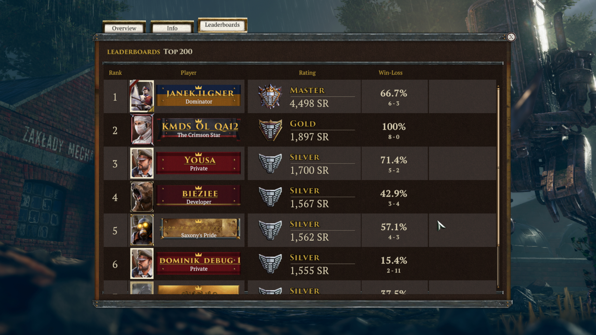 Iron Harvest became more competitive! Players can play against one another in ranked matches. Your position on the ladder is decided by your “Skill Rating” (SR).