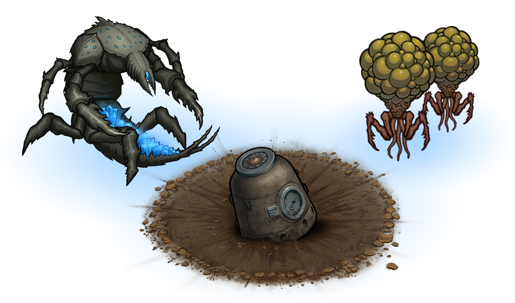 Now, what does this update introduce? Let’s find out! Let's start with something simple. This update finally introduces achievements to the game. You will be able to unlock almost two dozens of different achievements liberally sprinkled throughout your experience in the game. And in the long run, our plan is to add even more. Now something more interesting! The biggest change of this update is the introduction of world events! You can expect to see several event types such as boss fights, crashing meteorites, fall of space debris, native life form migrations, etc. We will keep adding more events in future updates as well. The goal is to have something happening in the world at all times, so you and your friends will get a perfect distraction from your regular loop of building the base and exploring the world.