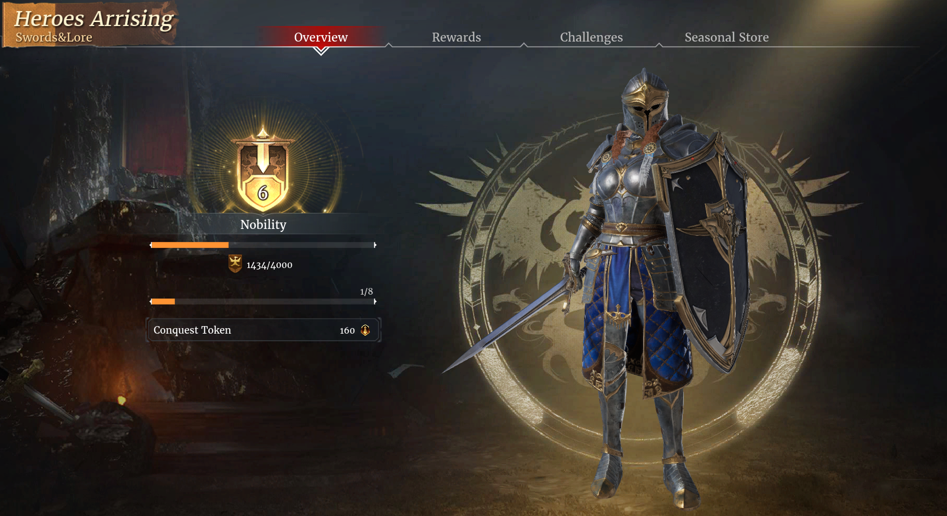 3.Seasonal Store You can use the Conquest Token, one of the Nobility rewards, to exchange other rewards in Seasonal Store. We can share a small part of rewards for your reference: -Legendary Hero/Mount/Unit attire for the “Sword & Lore” theme. -Highly recognizable Weapon attire . -Popular items such as Treatises and Rare Schematic. You can experience other mysterious rewards all by yourself on September 30. Get ready to fight in a brand new season and create your own legends!