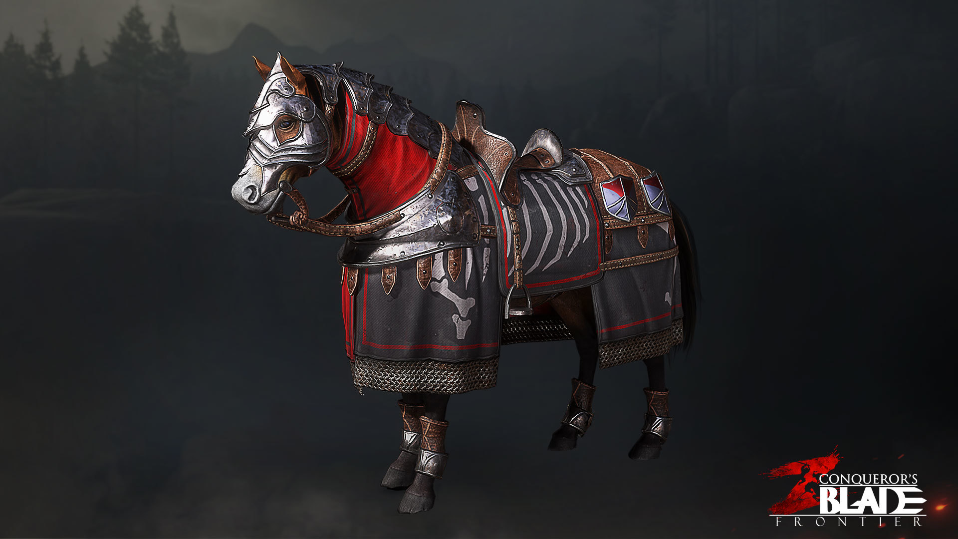 Take a look at these mount armour also in black and red, full of charming but horrible. It’s so weird to find skeleton pattern on it. This armour symbolized the death and darkness. I can even smell the blood once I think about it.