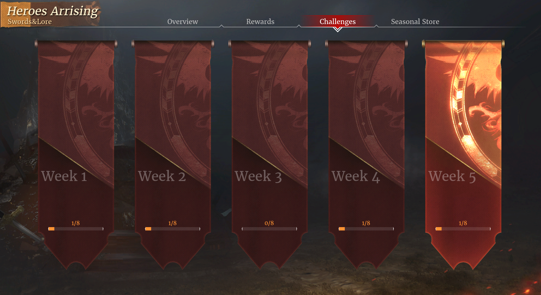 2.Seasonal Rewards The way to upgrade the Nobility is also very simple, that is to accumulate glory. The glory can be obtained in two ways: 1)Weekly Challenges: Season Eve will last for five weeks. Warlords can get a large number of glory by accomplishing current and previous weekly challenges. In the meantime, you can get extra chest rewards by accomplishing a specified number of weekly challenges.