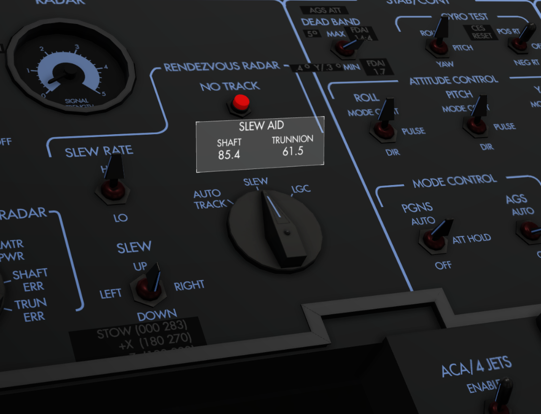 Also, a RR slew aid has been implemented, where you get the shaft and trunnion angle changes needed to target the CSM. I have not yet decided if this should use the UI above, or the same verbal chat box used by the co-pilot.