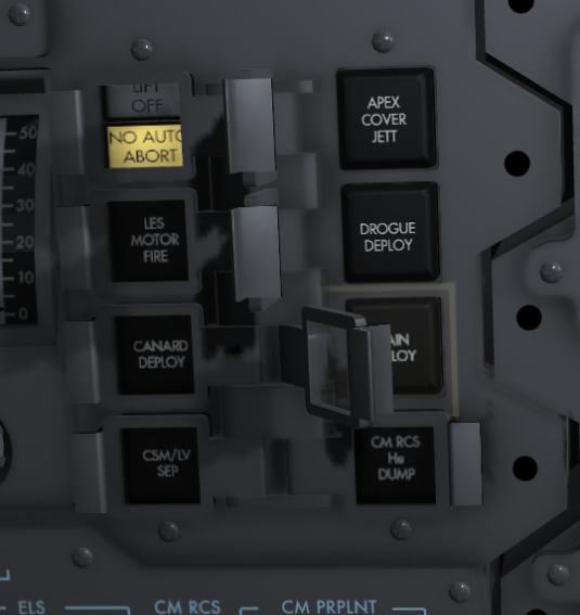 Landing & Splashdown When the blaze is over, you now enter a much better splashdown area. It's very important to arm the ELS system, or else you will crash. With the ELS system active, and set to AUTO, the apex, drogues and main chutes will deploy automatically. But verify this, and if a fault happens, you can deploy manually by setting the ELS to MANUAL, and use the altimeter to check when to trigger an action.