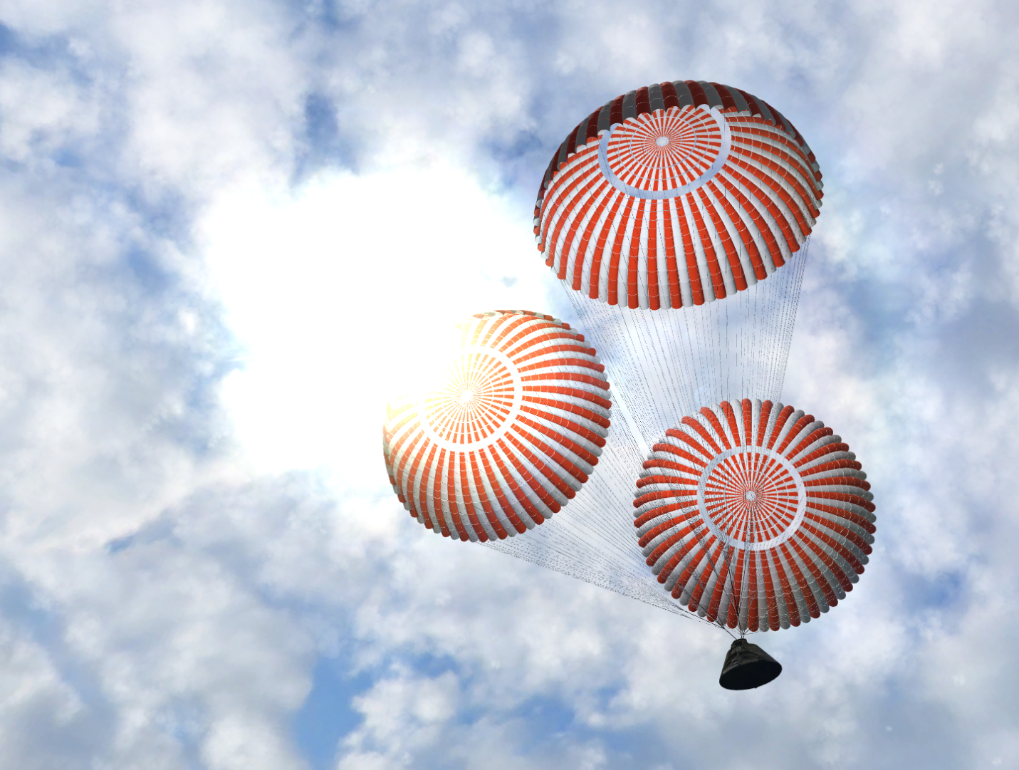 Then the three main chutes will deploy, and the descent rate should slow down to about 32 ft/s.