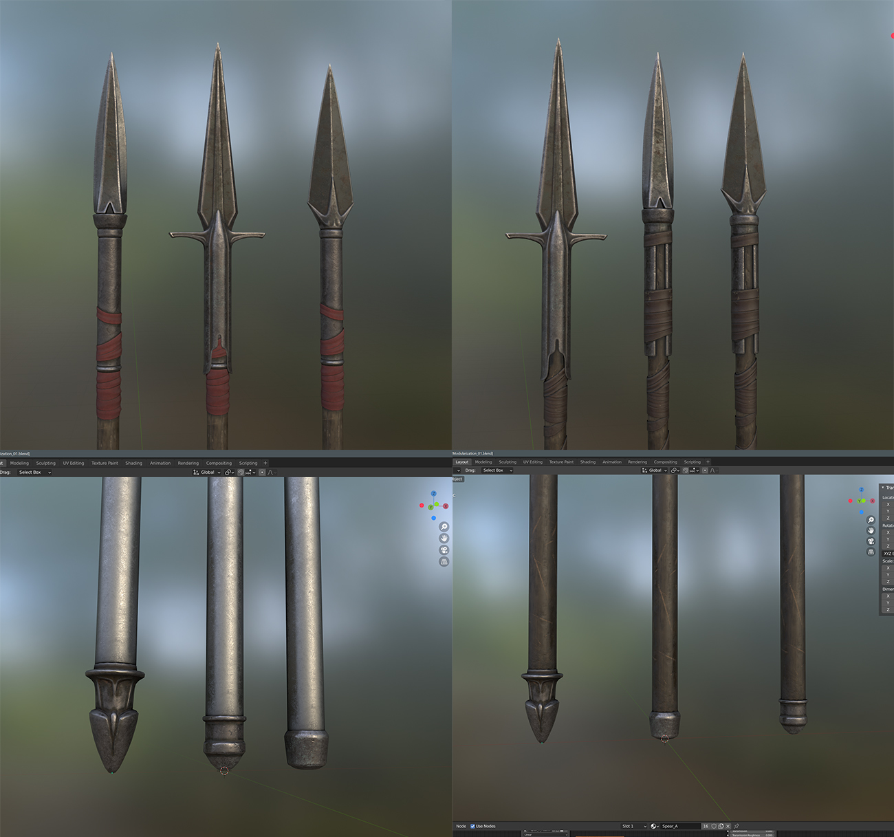 In previous updates we showed some of the items we are preparing for the weapon customization system, here are some new modular spears. We also heard a few questions about the use of third party assets and decided to mention it again, we always were open about it and even told in the trailer. For the important things we do custom, and our artists reach AAA level in quality. Let's take a look.