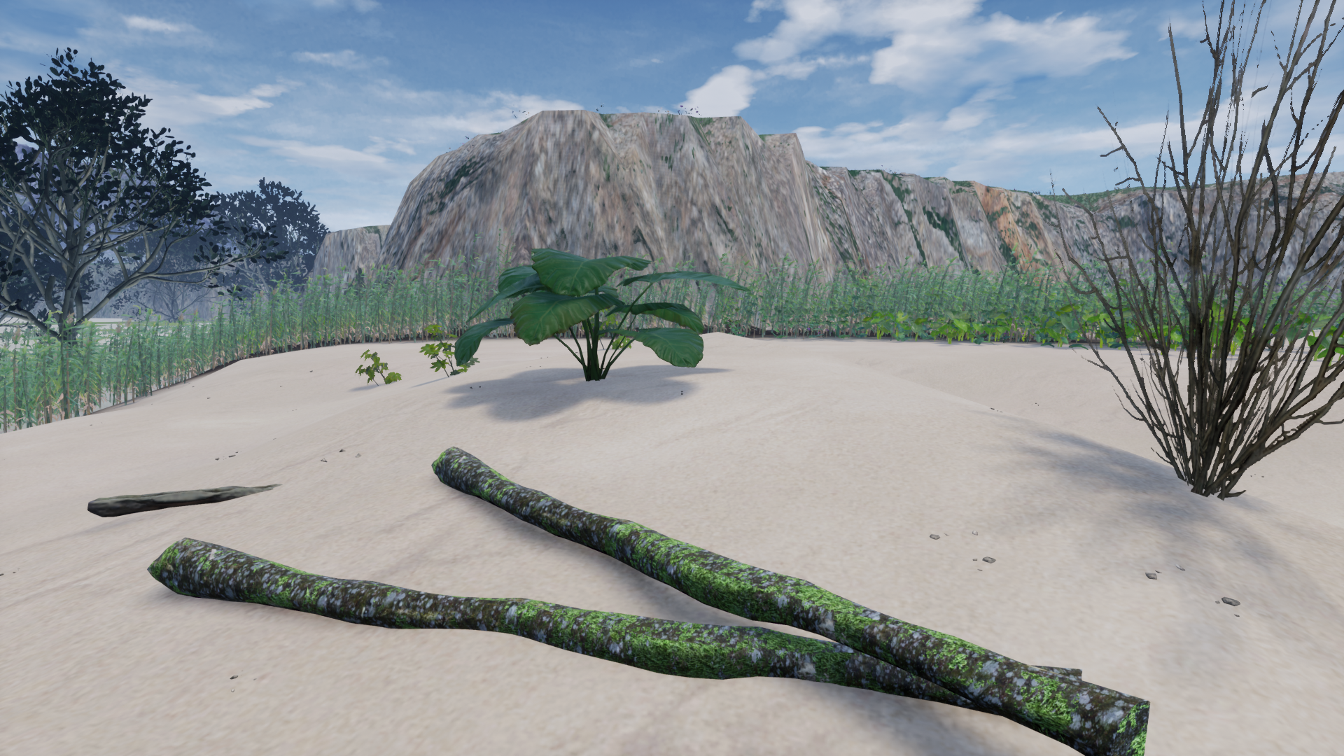 Due to dense vegetation in swamp - loot - like sticks - is too hard to spot. So new dry bush can be cut down to sticks using something sharp. Also I have added new wood piece in swamp as wood was washed on beach during high tide only. To this a big wooden pile was added as well. It will be used in future crafting. All wood can be used in fireplace with different burning length.