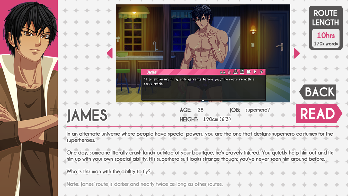 For those curious, James' 1st chapter is available to be read as well. You can't start a new route with him, but you can reread his 1st chapter as it is unlocked for you.