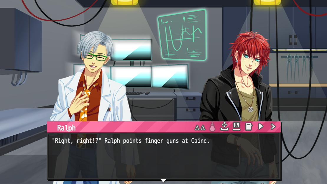 Anyways, be on the lookout for Caine! He'll be there to steal your heart away. Clocking in at 135k words (125k words for free users), or around 5 to 6 hours of playtime, he is the longest route to date.