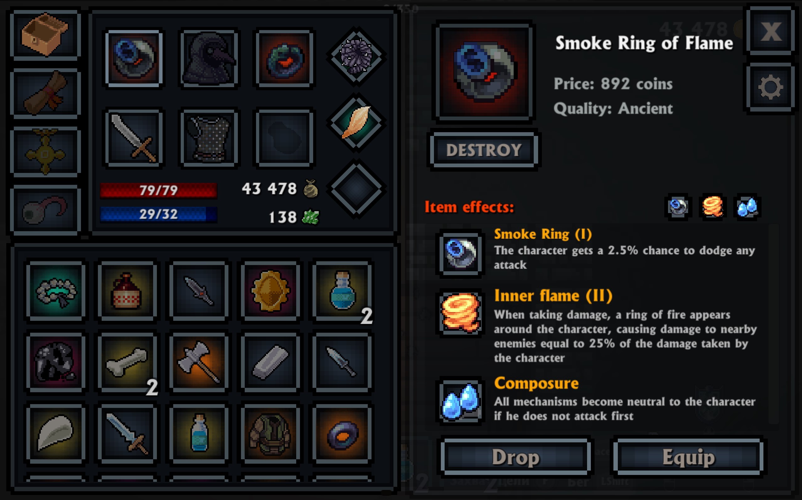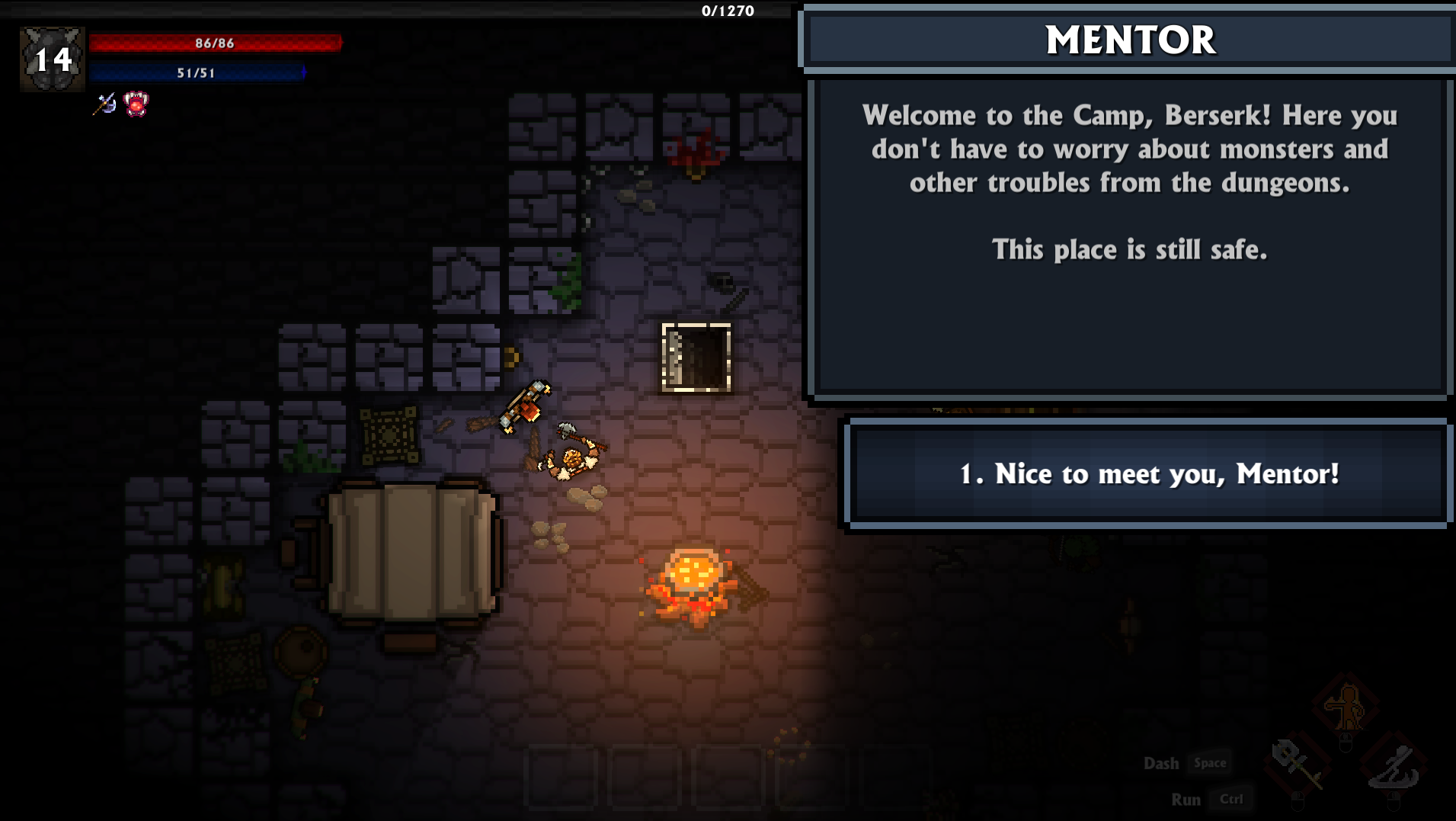 [MISC] - Interaction button position can now be changed - When completing a descent through the pause screen in the Camp, the character now automatically becomes a survivor, and not abandoned - The trail behind the character when dashing has become more noticeable - Updated the sound effects of the fight with the Warlock and the Weaver - The number of the current floor on the Map (if the character survived and has already played in this location) no longer hides the max. number of floors cleared - Crates and barrels are a bit smaller - Added support for 2560x1440 screen resolution - Redesigned control system (yes, again) - Redesigned localization system