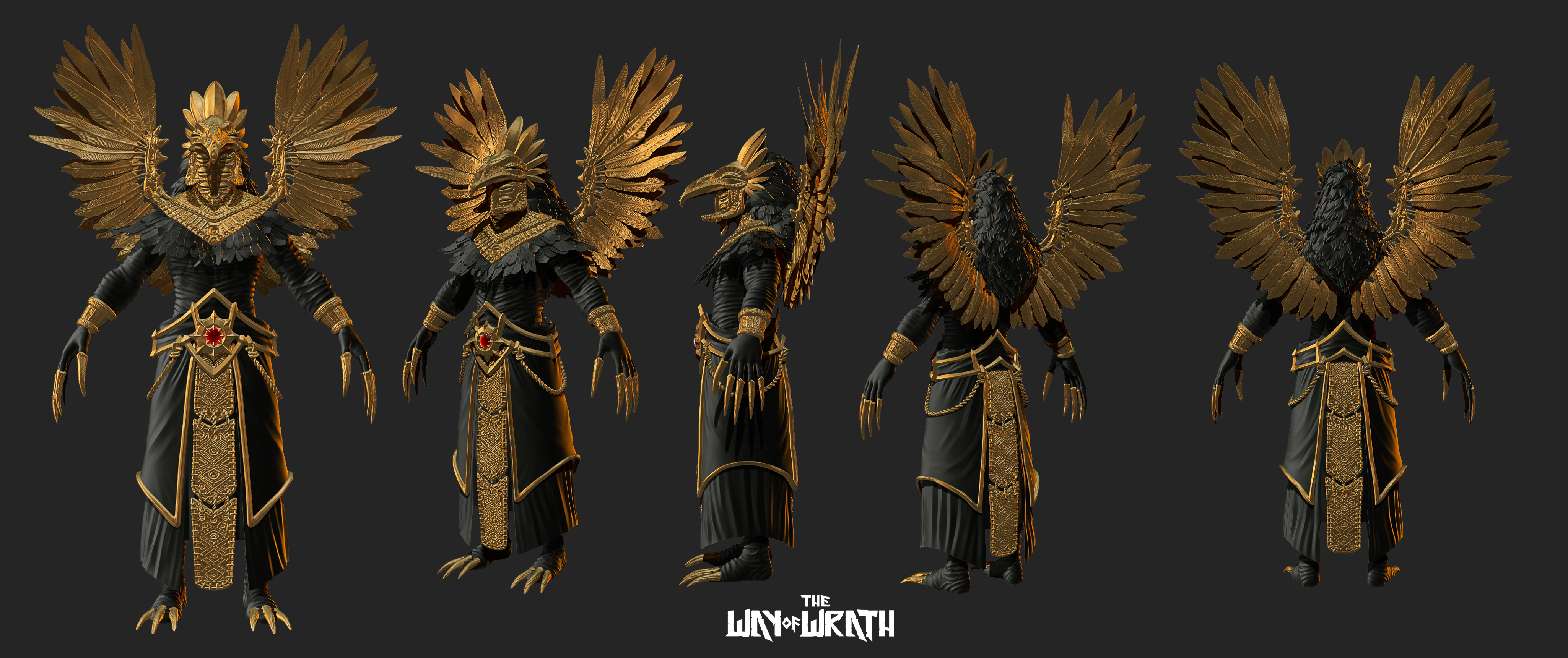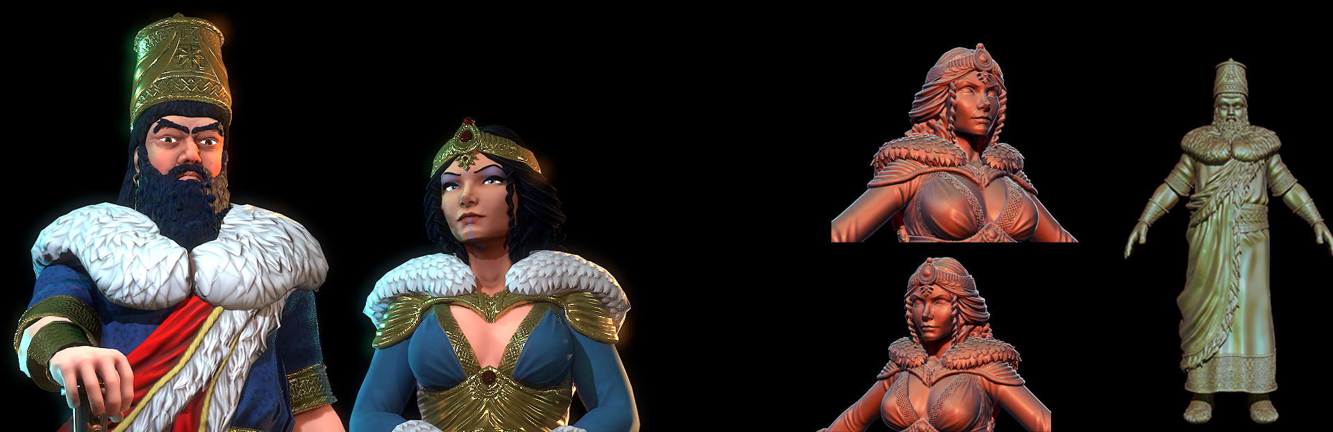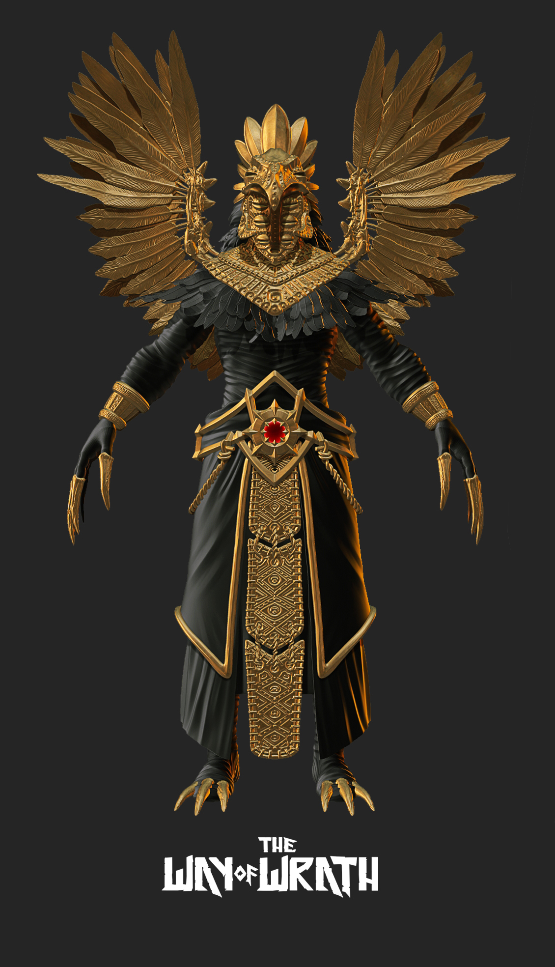His attire, hair, and adornments echo the dawn of metallurgy, when gold and bronze were just beginning to shape the world of rulers and warriors. The colors of his garments hold deeper meaning—his flowing blue robes symbolize his unyielding will for freedom and greatness, vast and limitless like the sky. Draped over this, his crimson cape is the mark of his wrath, a symbol of retribution against his enemies and the unbreakable strength of his warrior soul.