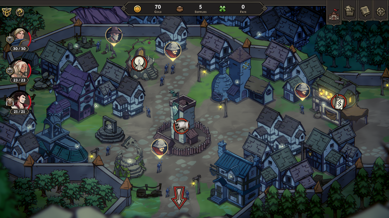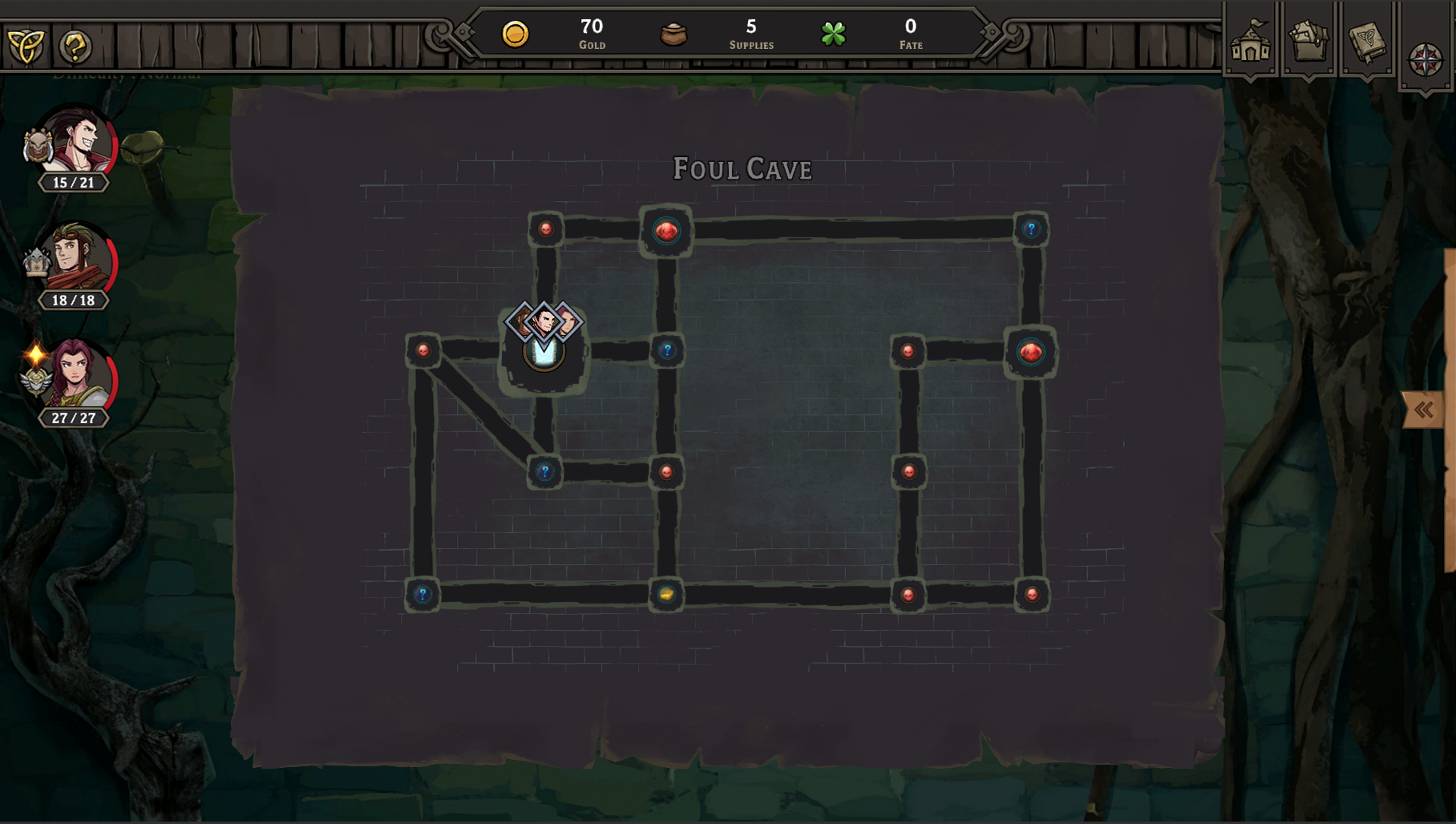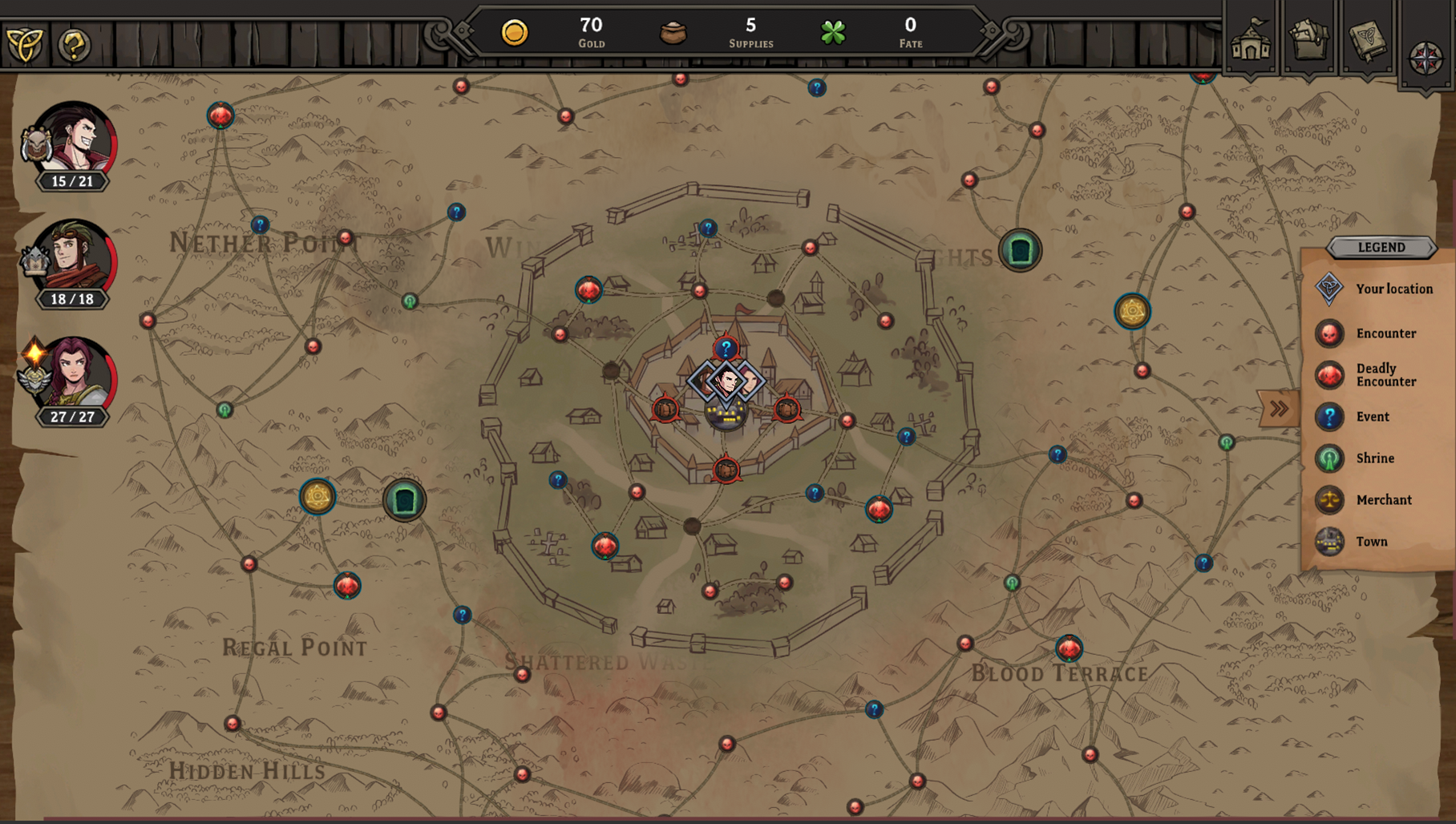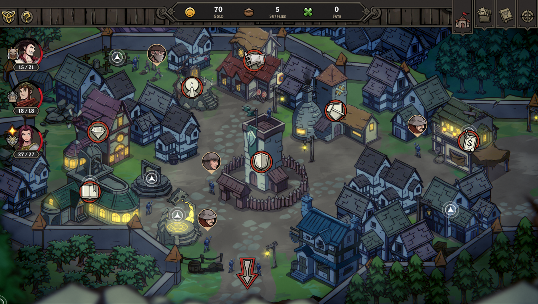 Camps - These act as safe grounds for you to camp. Camping is a good opportunity to rest, train, or make banter among your heroes. Camping will play a much bigger role in the future.