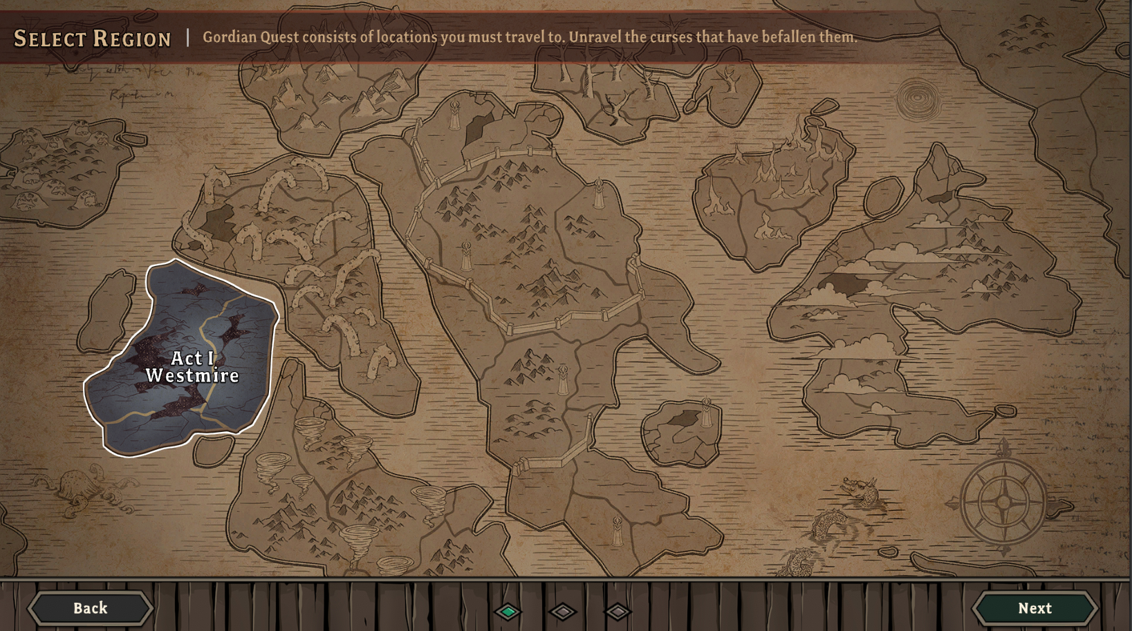 We're aiming for Gordian Quest to be a grand adventure. In our Early Access build, we introduce the first of four Acts, set in the land of Westmire.