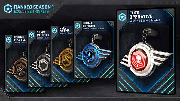 On top of that, you'll be rewarded an exclusive Season 1 Trinket for the highest Rank you attain during the Season when it wraps up. Moving down a Rank won't cost you the higher Rank Trinket, so don't be afraid to fight your way back to the top!