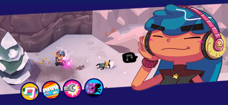 KEYTAR BLAST: Raff's signature skill! By holding down the Charge skill, you can wind up a devastating attack with the Keytar that will hit everything in a large cone in front of Raff! Enemies will take a lot of Magnetic damage (which is effective against Shields in particular), and allies will be healed instantly!