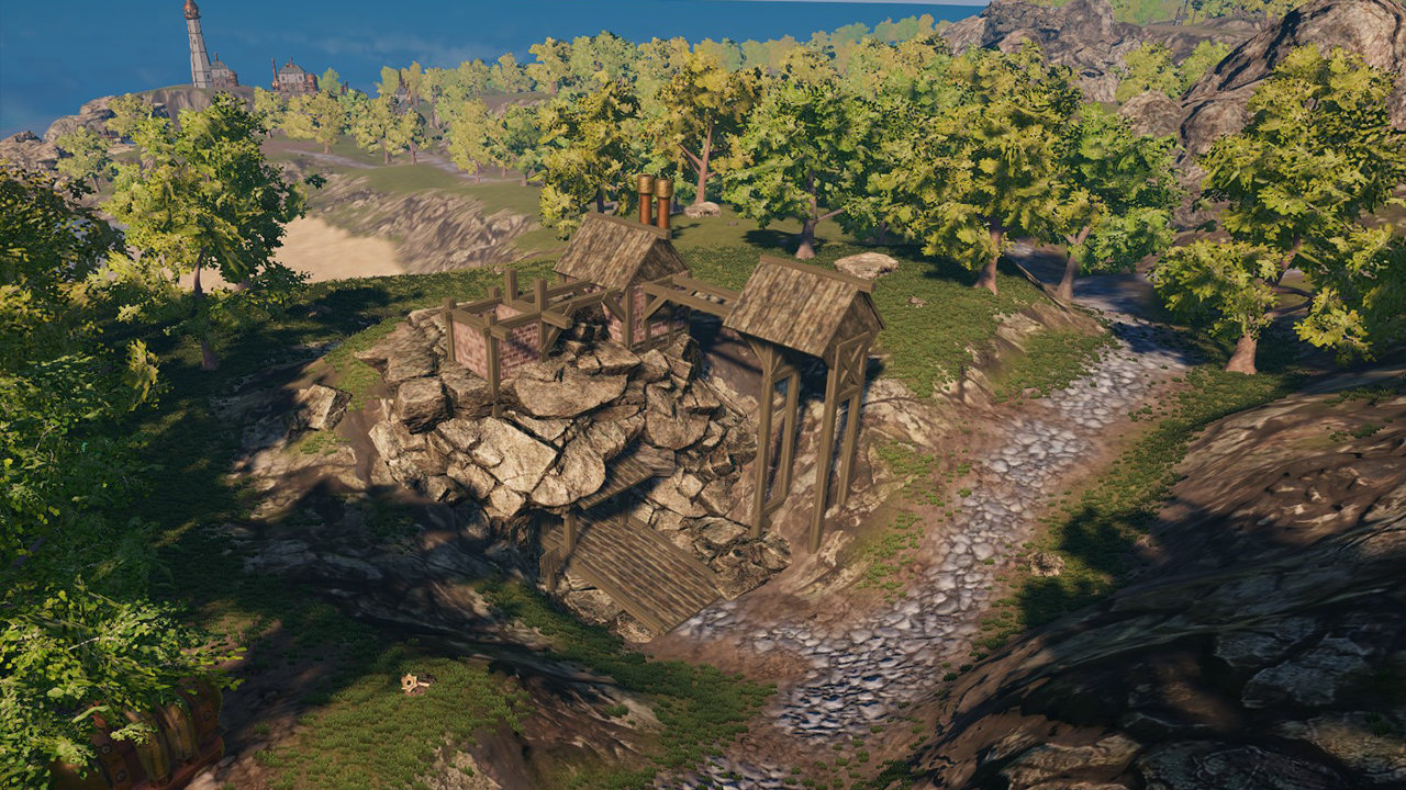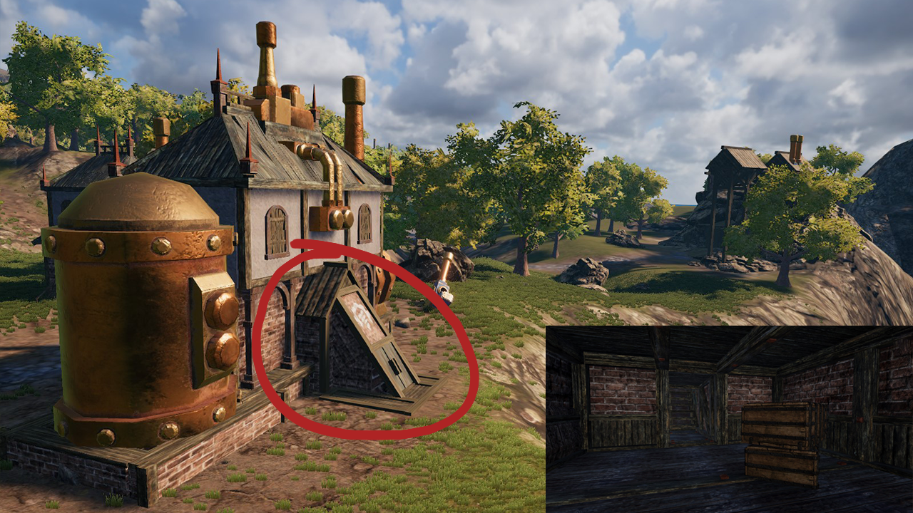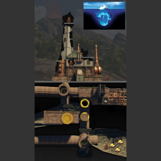 The shelters sparked a lot of new ideas and we kept experimenting with how far we could take this. The main idea is to give you more places to explore while keeping the concept of the eruptions and destruction that follows when the wave hits the surface. This lead to the so-called "Iceberg" concept, that would be applied to all towns and larger COG structures.