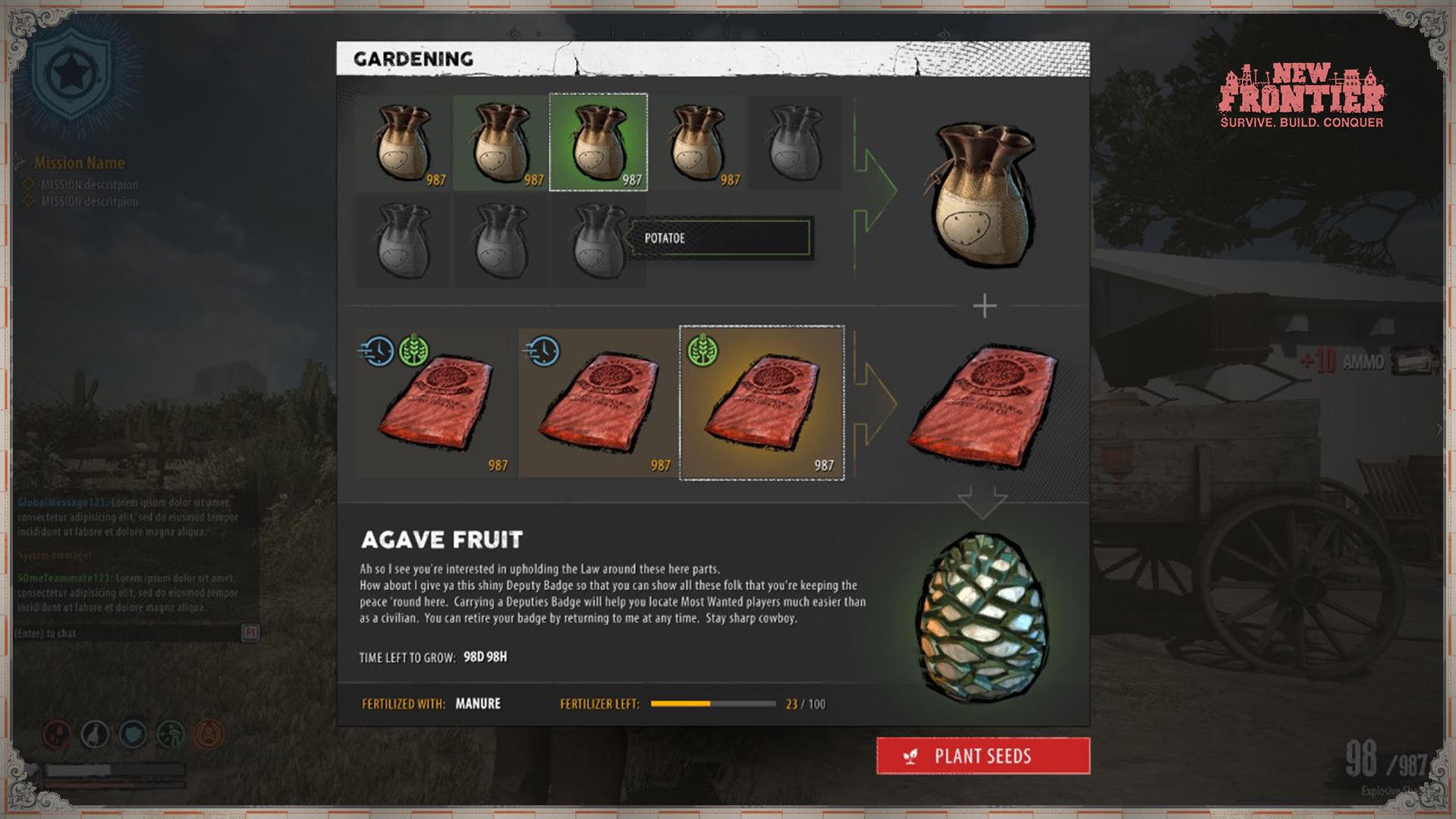 We made a change to how gardens work and how you can place them. You can not place them through the crafting menu anymore. From now on you choose them from your decoration menu on your base build system. Now you place a generic one and apply the seeds after. That way you can first plant apple seeds and then the next day eggplant in the same garden.