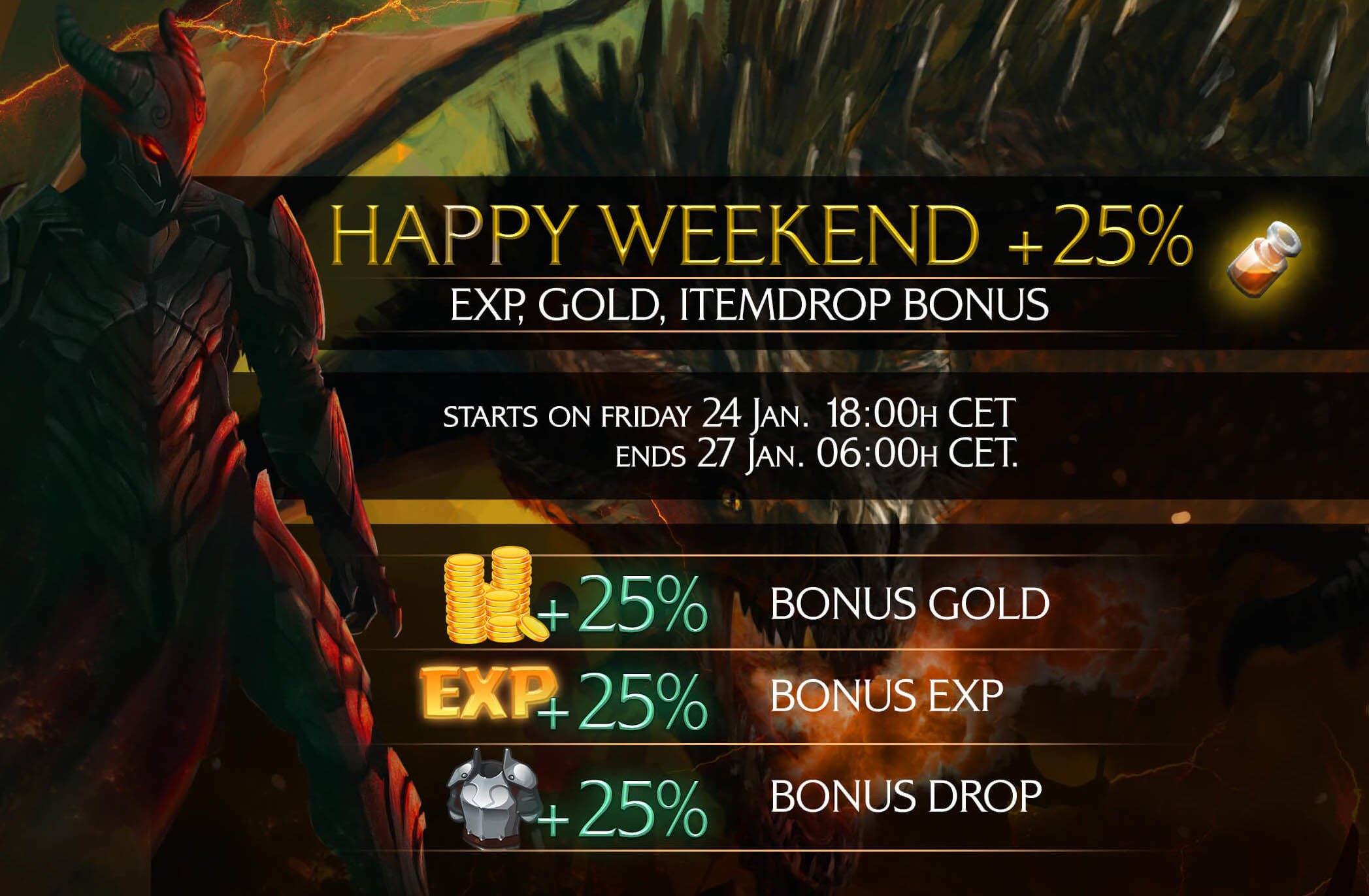 We are happy that we can present our first weekend event to you today. Therefore we increased the rates in INFERNA so that you can get great boosts from Friday 18.00h CET until Monday 06.00h CET.