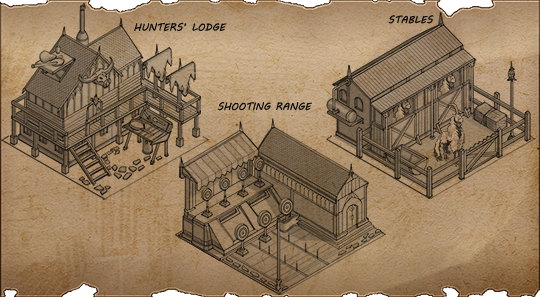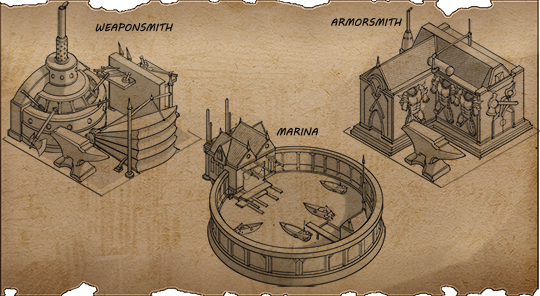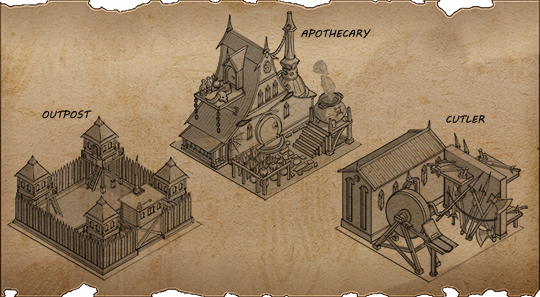 We've been focusing on creating new maps, more monster variants visuals, and the visuals for the Guild Upgrades. As we've covered before, the guild upgrades are structures that you build in the various zones of Teora. Each zone will have its own grid to create the buildings in and each building has their own effect and bonus from being in the proximity of other buildings. The buildings mostly affect missions, but some affect patrols and others have a more global effect. Here's the original post about it for more details!