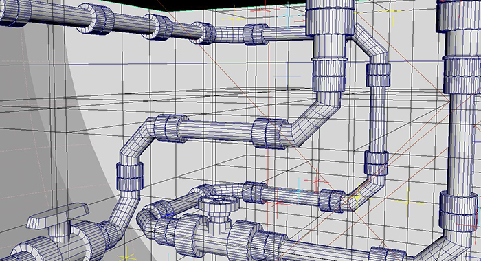 We have also been working more on designing the first art content for the plumbing system. Our research into the subject has found that it is common to have plastic pipes for such systems. However plastic is not the most interesting of materials so we have spent time trying to make the models themselves quite interesting and not just simple cylinders.