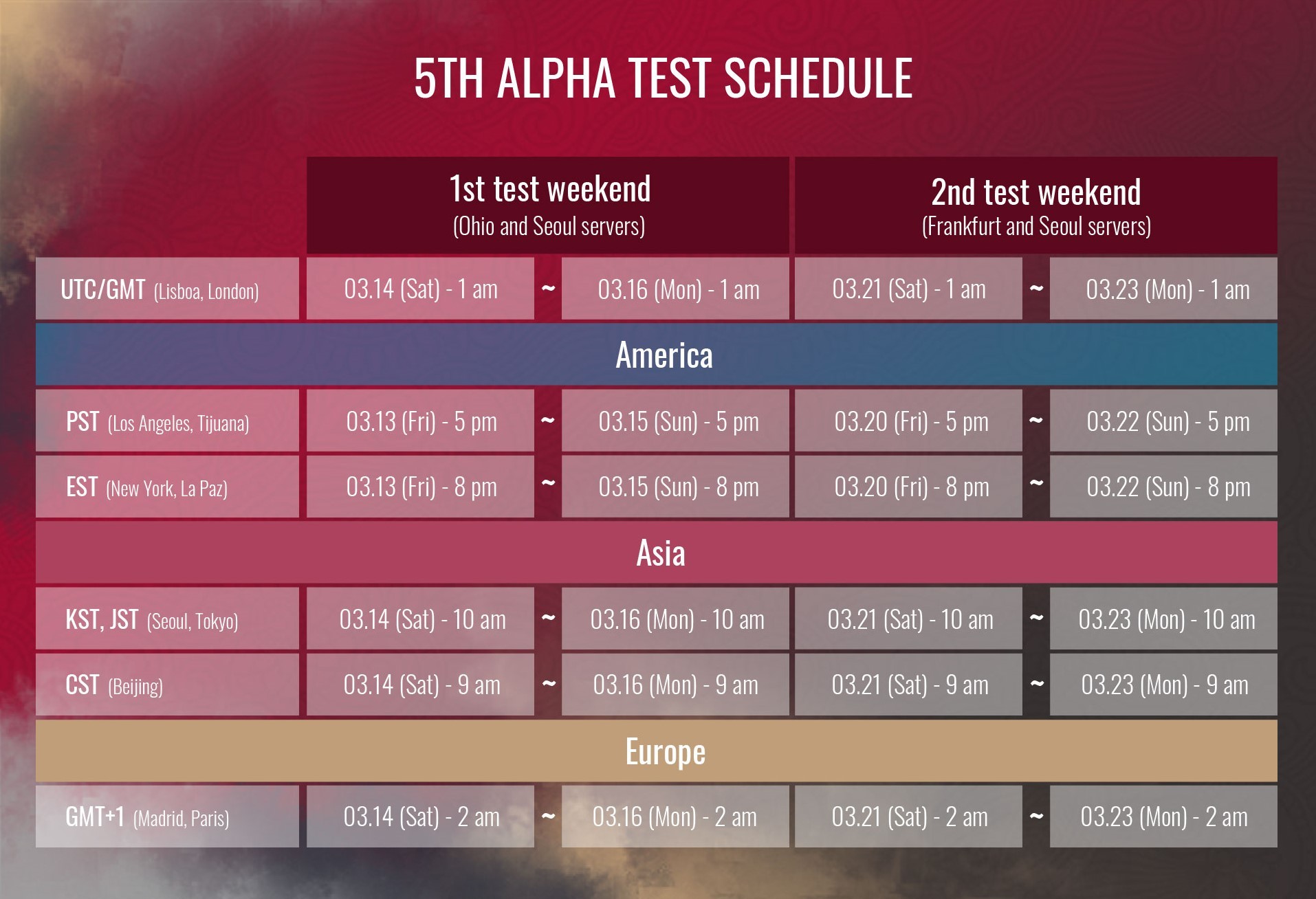 We received a lot of requests for more time for this 5th Alpha test. We listened. We've added some additional dates to the 5th Alpha Test for our European friends.