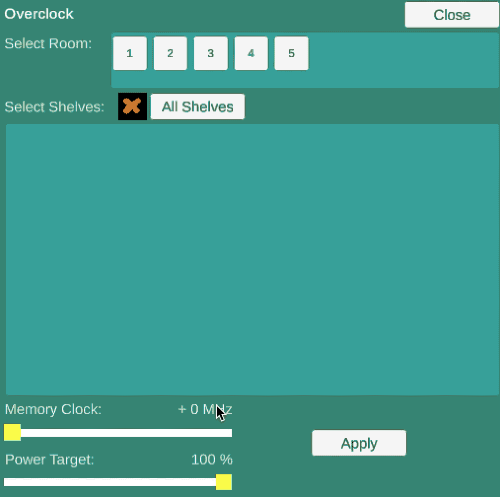 What is the downside of overclocking? It affects the device lifespan. The more you use the GPU overclocked, lifespan of GPU decreases slightly. Every model and manufacturer is different when it comes to overclocking performance. There is also change that GPU breaking beyond repair if you apply overclocking values that the GPU cannot handle. Another subject to consider when talking about overclocking is the cooling. More power means higher temperatures. You have to have cooling to apply higher clock speed values. New version of the game will offer two cooling solutions. One for applying to the shelf and one to apply to the room. There is also a tool for applying overclock values to multiple units at once.