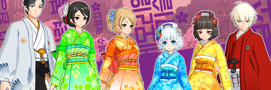 **Running:** from 19/2 to 4/3/2020. The party girls Haru, Lilly, Iris and Stella look fabulous in their cute, short kimonos! Meanwhile Erwin and Jin are showing they know how to party with style: their relaxed hakama trousers in combination with matching shirt and haori jacket will make some waves.