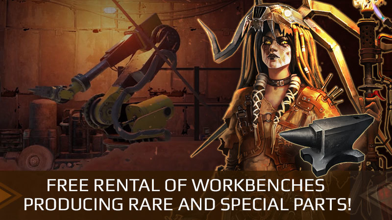 Due to the fact that most of survivors don’t leave their garages, the factions of Wastelands decided to open unlimited access to their workbenches for crafting “rare” and “special” parts for everyone. During the whole special event, the rent of the workbenches producing rare and special parts will be absolutely free! Do not miss your chance to take advantage of this attractive offer!