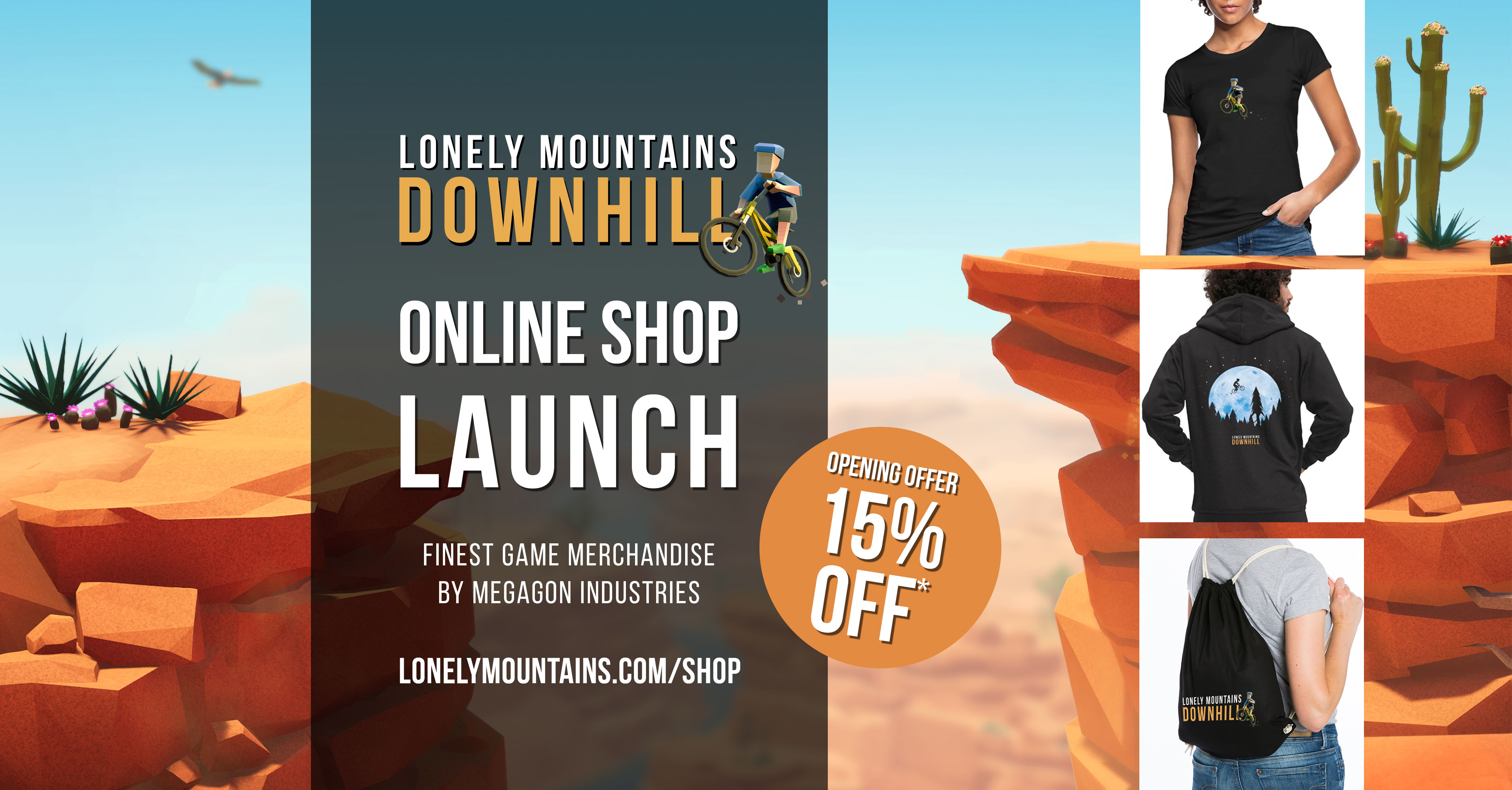 You love Lonely Mountains: Downhill and would like to show it to everybody? So do we! That's why from today on you can purchase the original game merchandise in our official Lonely Mountains: Downhill Online Shop - proudly presented by Megagon Industries! Choose from different authentic Lonely Mountains: Downhill designs and a big variety of products like T-Shirts, Hoodies and bags!